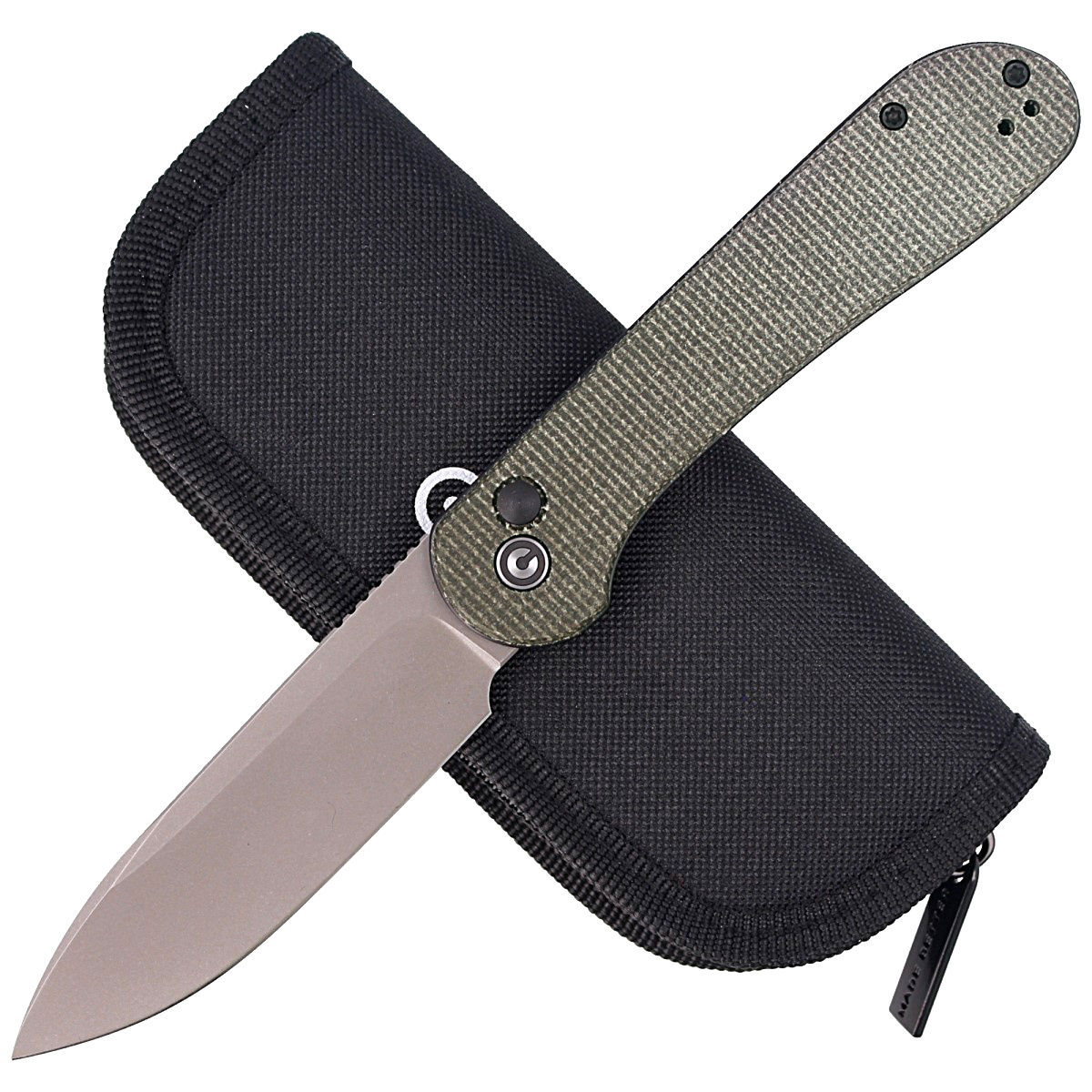 CIVIVI Knife Button Lock Elementum Dark Green Micarta, Gray Stonewashed (C2103C)