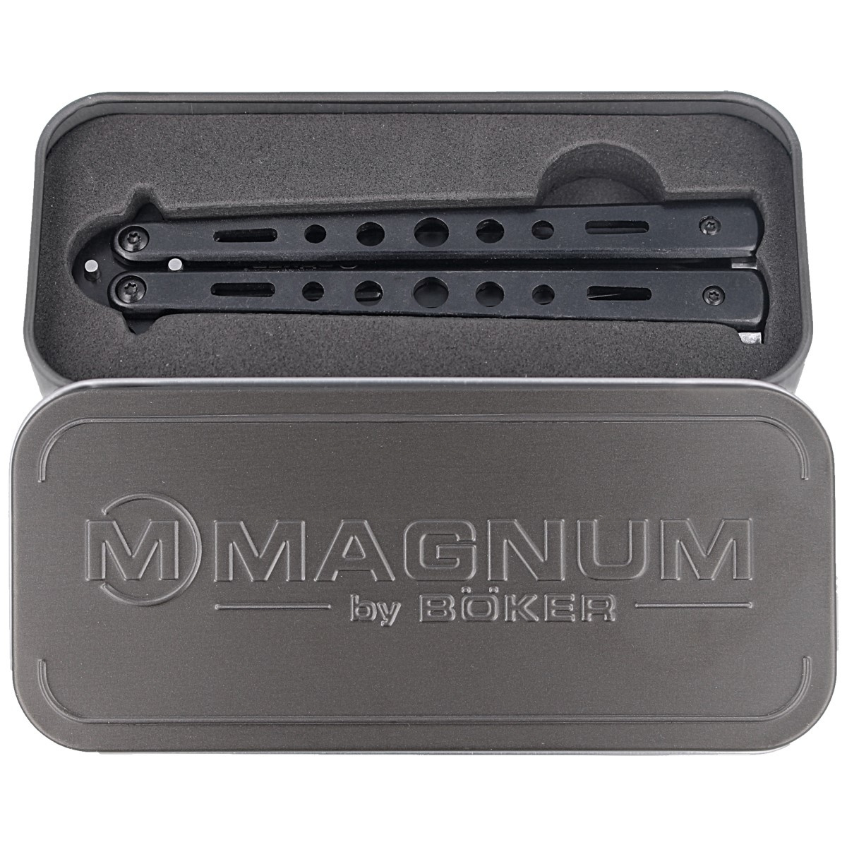 • All Black is a butterfly knife from the Böker Magnum series. Excellent value for money, 440A steel, Tactical Matte Gray coated handle. A perfect knife for those starting their adventure with balisongs!