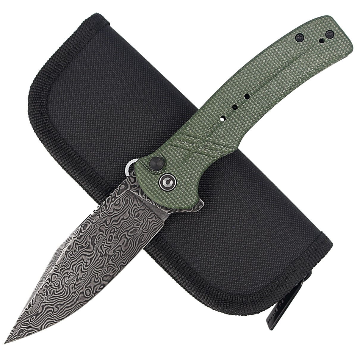 Cogent Green Micarta, Black Damascus is an excellent E.D.C. knife with a clip point head. Made of good materials at a very attractive price. Bestseller!