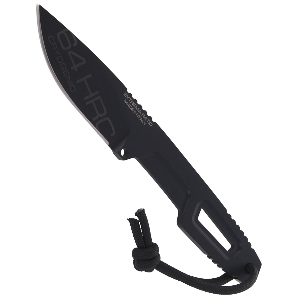 Blade - sharp and solid Drop Point type, 5 mm thick, with a cutting edge ensuring extreme cutting performance. The Plain smooth blade is made with a flat grind (Flat Grind). Made of molybdenum high-speed steel Böhler S600 with 4.5% chromium content, which makes it a steel subject to oxidation. For this reason, Extrema Ratio has chosen a new blade coating - EXP DARK, which immortalizes the name of S600 steel, its unique hardness of 64 HRC and information about Cryogenic cryogenic treatment - features that emphasize the uniqueness of this alloy.