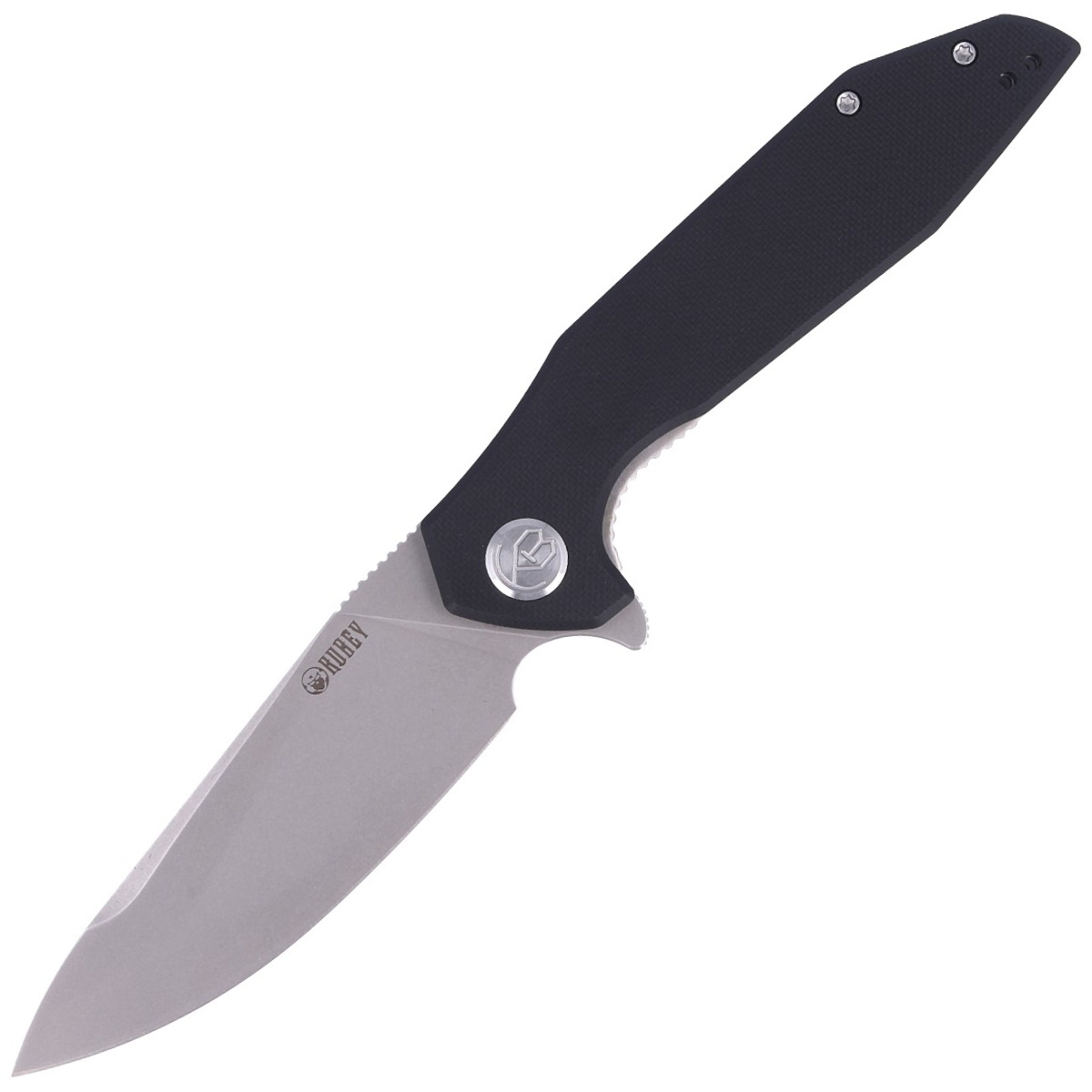 Handle - black-colored G10 (fiberglass compressed with synthetic resin) textured handle bolted to steel frame for better grip. The open-backed design attached by steel spacers reduces weight and makes cleaning easier. Simple, sturdy design gives assurance of many years of use. Deep forefinger groove improves grip security. The pivot is embellished with a stylized Kubey brand logo. A two-position (right and left) metal deep carry clip allows you to carry the knife discreetly in your pocket in the tip-up (blade tip up) position.