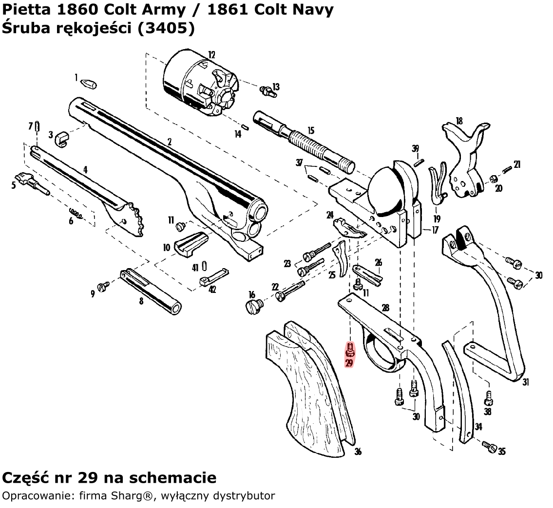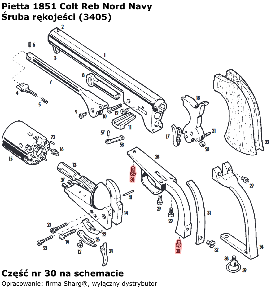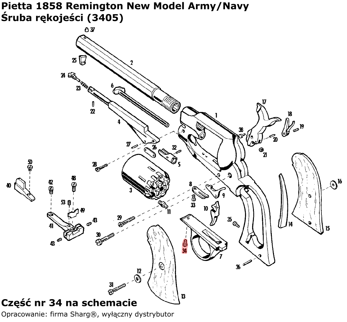 - 3405 (service) handle screw by Pietta. For black-powered revolvers: 1836 Colt Paterson, 1851 Colt Reb Nord Navy, 1860 Colt Army, 1861 Colt Navy, and 1858 Remington New Model Army (.44 inch) / Navy (.36 inch)...