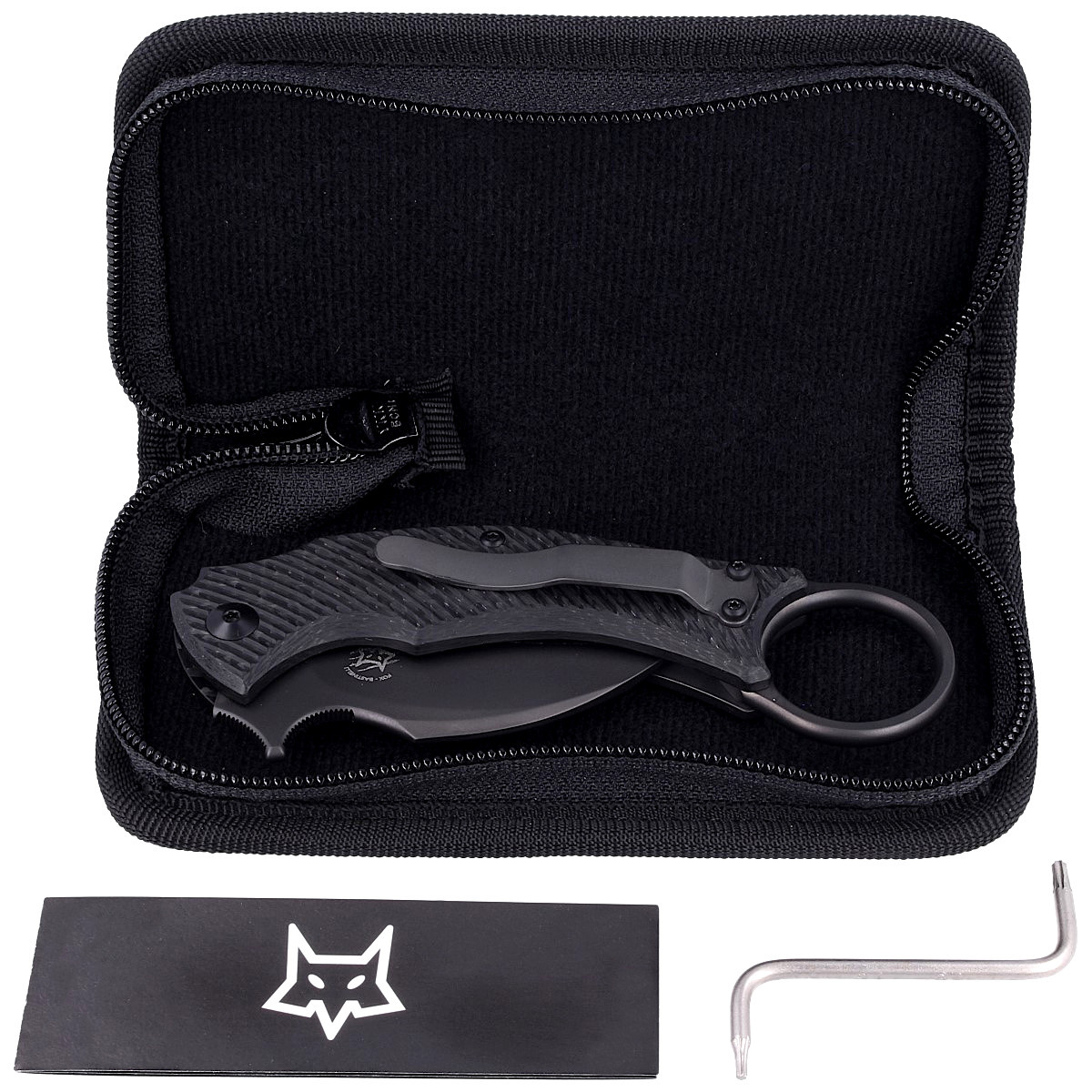 FOX Karambit Black Bird Black Carbon Fiber / Gray Titanium, Black ELMAX by Bastinelli (FX-591 TIC B)