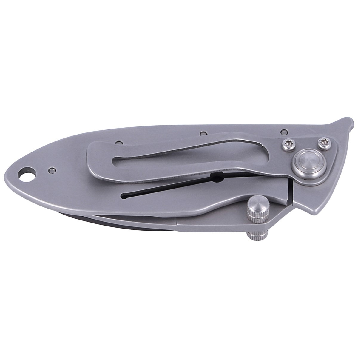 Blade - Spear Point type finished masking fine scratches by Bead Blasted method. The small thickness of the blade combined with a high, flat grind gives excellent cutting edge geometry and extreme cutting performance. The washers are responsible for the smooth and smooth operation of the blade's extension mechanism, which can be opened with a double-sided pin in the wedge (Double Thumb Stud). The whole thing is locked with a solid Frame Lock.