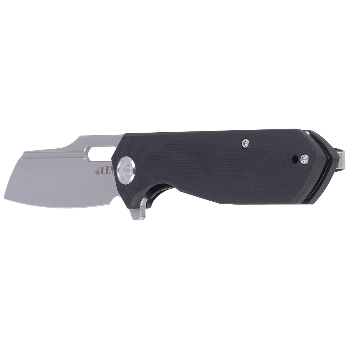 Handle - grips made of G10 composite, a virtually indestructible plastic, insensitive to weather conditions, resistant to chemicals and mechanical damage. Textured for improved grip confidence, screwed to the knife's steel frame. The so-called open-backed design without the typical backspacer, fastened together with steel spacer sleeves for easy cleaning. The simple, sturdy design gives assurance of many years of use. Ergonomic finger recess for easy grip on the Handle. Pivot decorated with stylized manufacturer's logo. Two-position (right/left) steel deep carry clip allows you to carry the knife discreetly in your pocket in tip-up position (blade tip up). Above the clip a lanyard hole, a hole for threading a cord.