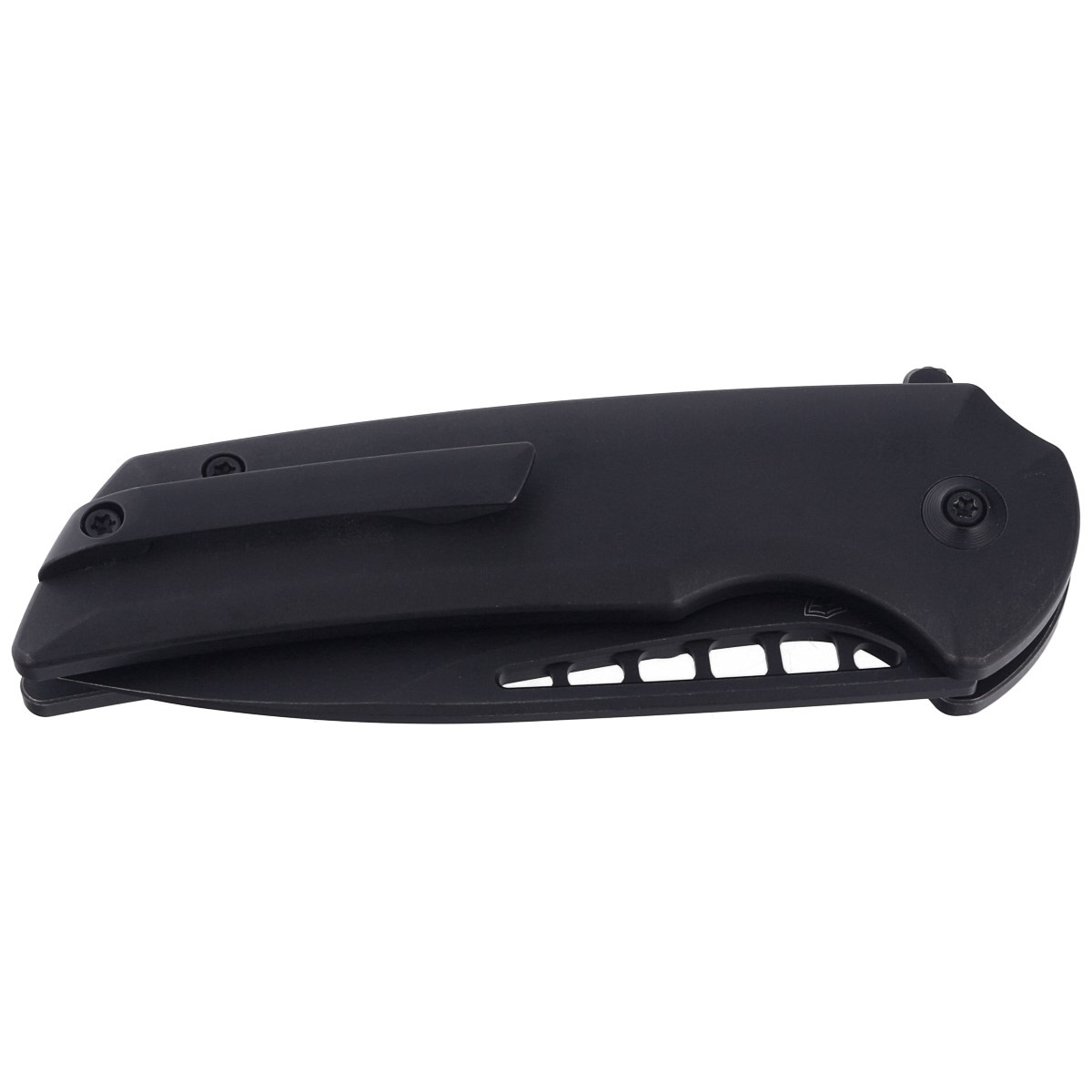 Blade - drop point type, finished with a scratch-masking Black Stonewashed finish. The generous belly extends the length of the cutting edge in relation to the length of the blade converging towards the needle-sharp tip of the knife. The thickness of the blade provides high strength while the high, flat grind guarantees excellent cutting properties almost on the level of a razor. Ceramic ball bearings support the opening of the blade in two ways, with a stylized thumb slot (Thumb Slot) or a quick index-finger flipper when opened acting as a stag. Finger choil, a cut for the index finger, prevents the blade from slipping when performing precision tasks. The whole thing is locked with a modern button lock. Under the lock button is a spring, providing enough resistance to avoid accidental opening.