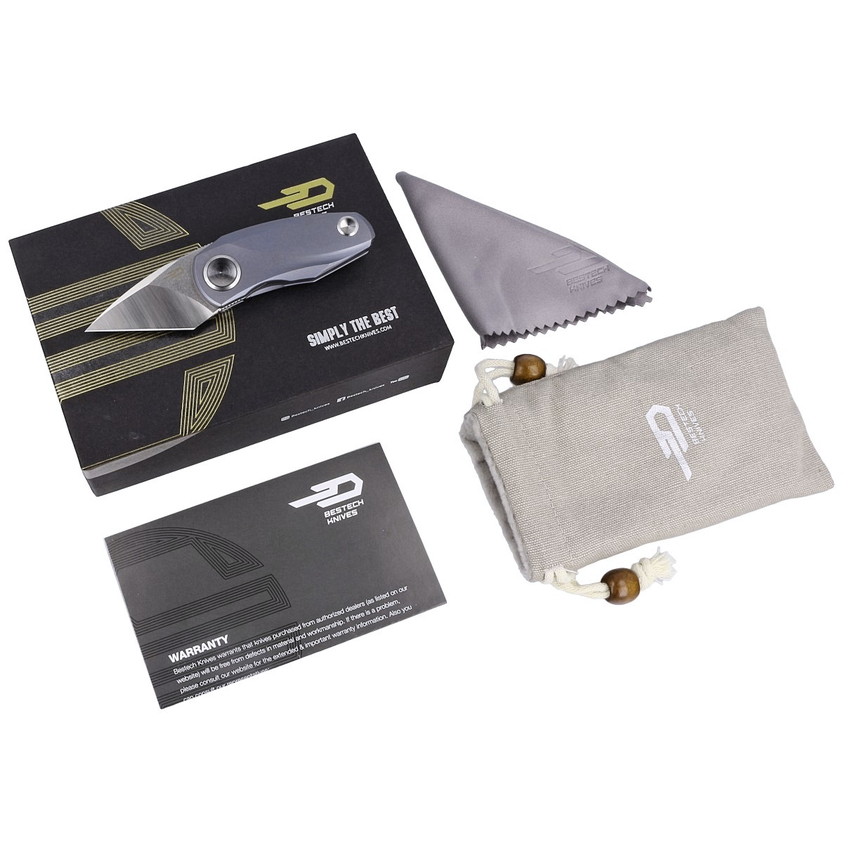 Tulip Frame Lock Blue Titanium, Stonewash / Satin elegant EDC knife by Polish designer and knife maker Ostap Hel. The blade is modeled after Japanese kiridashi, the handle is made of titanium. Extremely lightweight, disappearing easily in a pocket or purse. A bestseller!