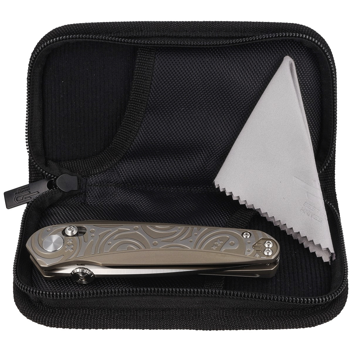 Mothus Light Bronze Titanium, Satin an elaborate EDC folder aimed at discerning buyers, the result of cooperation between Polish designer Grzegorz "Kombou" Grabarski and Bestech Knives company. Intricately decorated titanium handle, excellent blade steel, intuitive locking mechanism!!!