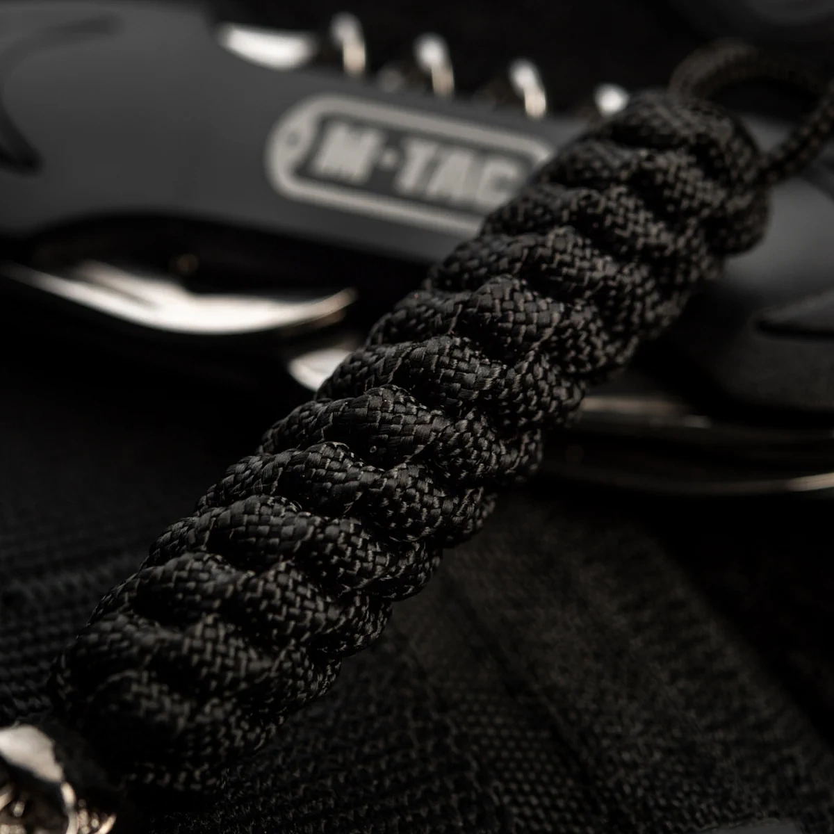 - M-Tac Cuboid Skull Black/Coyote, lanyard for knife, flashlight, keychain, made of paracord, ending with a metal skull. In addition to its aesthetic value, it extends the handle of the knife, making it easier to take it out of your pocket.