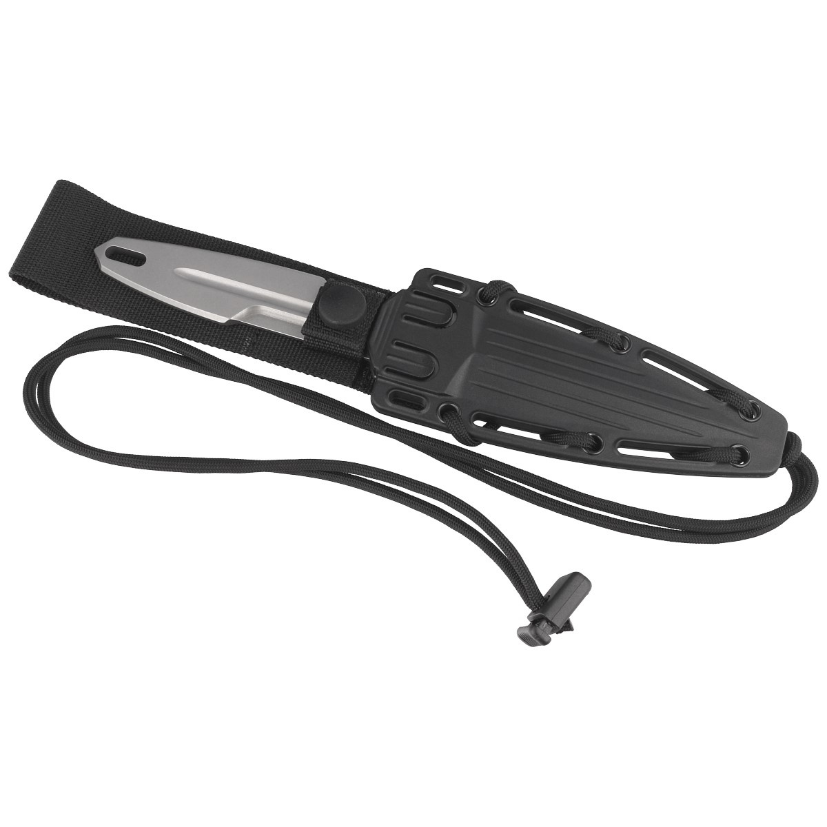 Sheath - the molded nylon sheath is designed to be extremely flat and has very small side dimensions. The symmetrical design of the knife allows it to be inserted into the Sheath with the cutting edge facing right or left, so it can be used by right or left-handed people according to their preference. A system of holes on the edge of the Sheath allows the Sheath to be quickly attached under the straps of the M.O.L.L.E. system or with UltiClips (not included), which allows even more individualization to adjust the carrying system to one's preferences. In the lower part of the sheath there is an opening that allows water to drain in case it gets inside.
