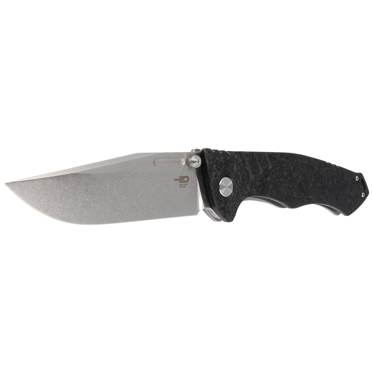 • Keen II Black Titanium / Marbled Carbon Fiber, Stonewashed / Satin, one of the flagship knives from Bestech, designed by Morgan Koens. A large, extremely sturdy folder that will perform well in both EDC applications and heavier trowels in the field!