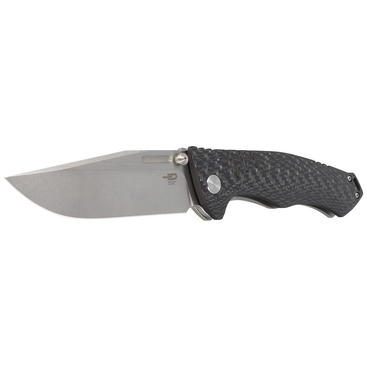 Keen II Black Titanium / Carbon Fiber, Stonewashed / Satin, one of the flagship knives from Bestech, designed by Morgan Koens. A large, extremely sturdy folder that will perform well in both EDC applications and heavier field work!