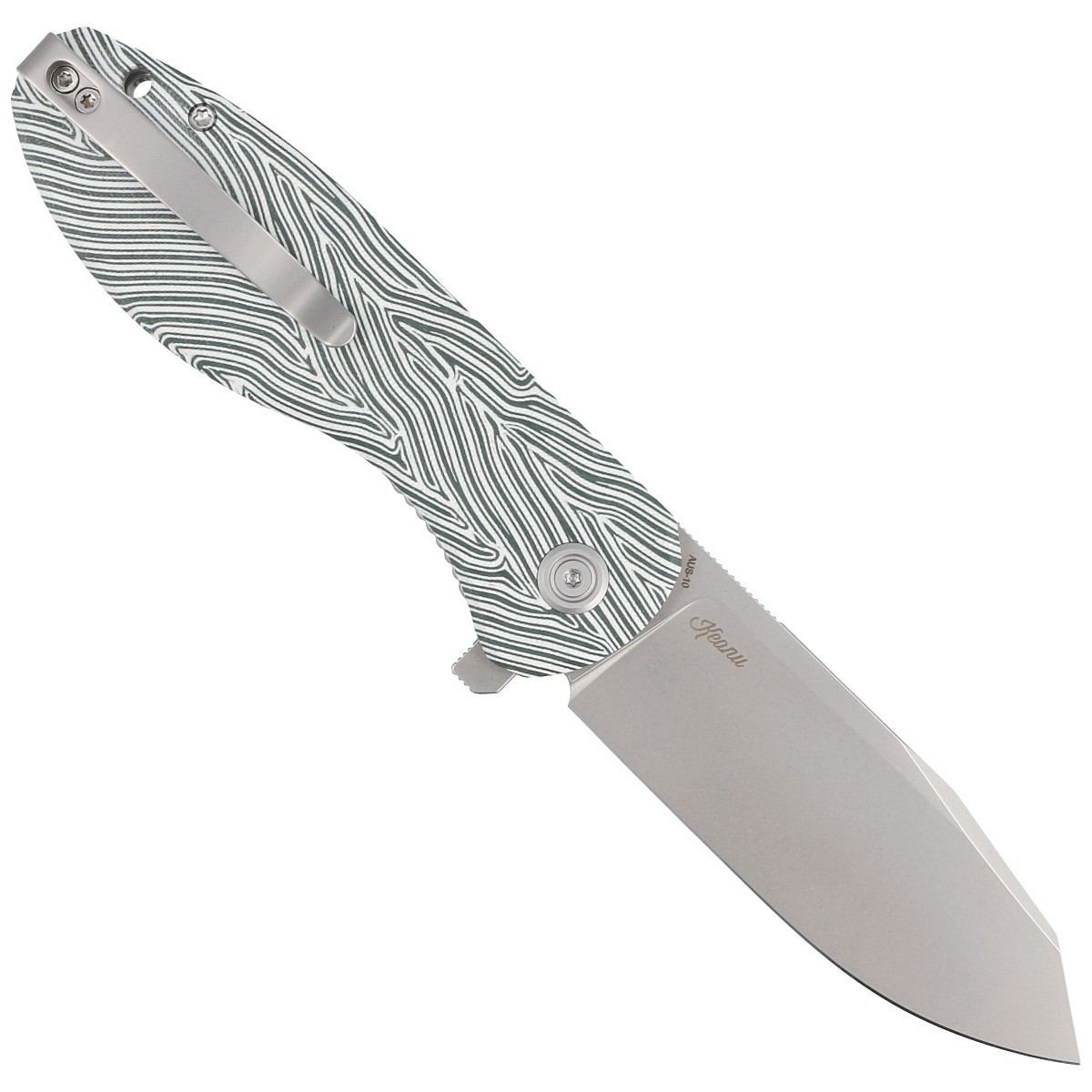 Master Chief White Green G10, Bead Blast handy, powerful EDC knife. Blade reverse tanto made of AUS-10 stainless steel, fast flipper for opening and G10 handle. The perfect knife for everyday jobs where it will never fail! Bestseller!