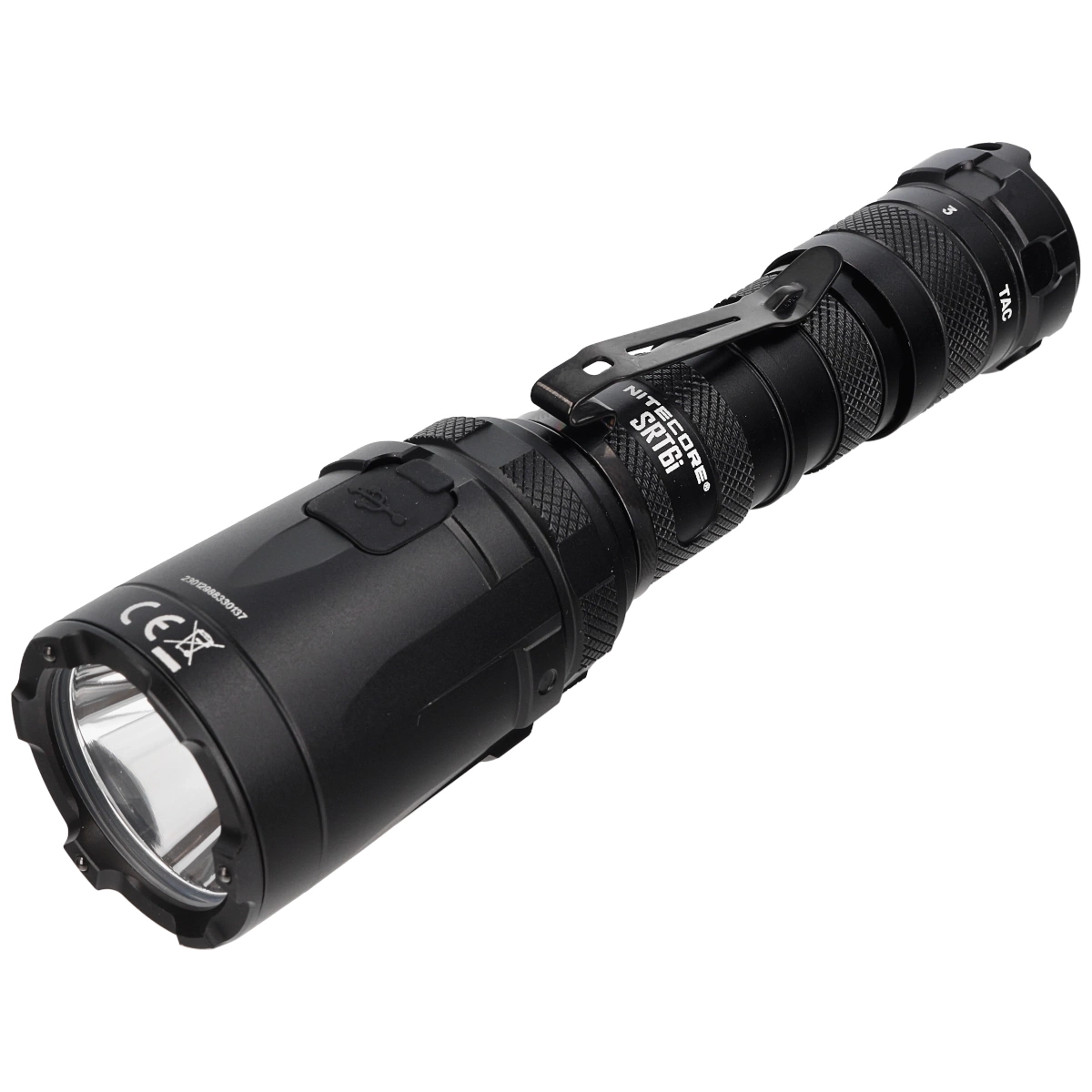 Nitecore SRT6i tactical flashlight combines efficiency with Smart Selector Ring for easy use and precise control. The high-efficiency LED produces a maximum of 2100 lumens and achieves more than 510 meters of light output. The stainless steel bezel with three silicon nitrided tabs shatters glass effortlessly, making the SRT6i an indispensable tool in emergency situations. With IP68 water resistance and a covered charging port, the SRT6i can be safely used in any climate, making the SRT6i an amazing tactical kit.