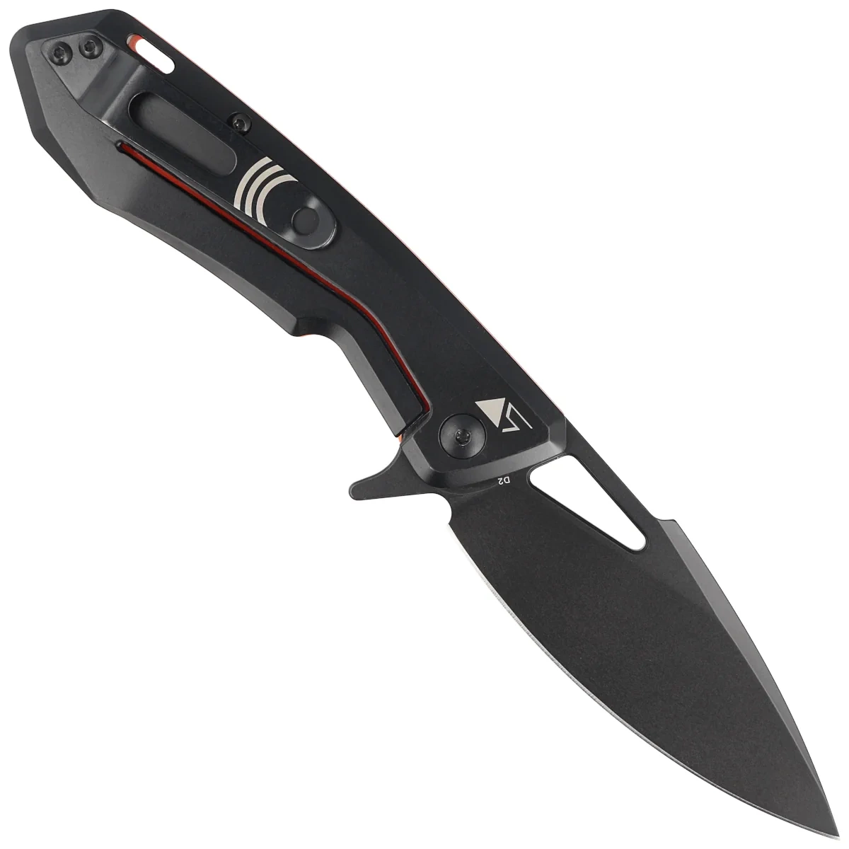 Pelican Orange G10 / Black Steel, Black, a sturdy EDC folding knife, the result of a collaboration between Kazakh designer Aslan Zhanabayev and RealSteel Knives. Utility drop point Blade made of D2 tool steel, Flipper flipper for opening and Handle made of virtually indestructible G10 plastic. This knife will never let you down! Bestseller!