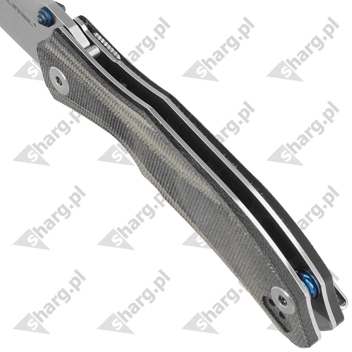 Blade - Drop Point type with scratch-masking Stonewashed finish. The curved cutting edge with a prominent belly converges towards the needle-sharp tip of the knife. The thickness of the blade provides high strength while the high, flat grind gives excellent cutting edge geometry and extreme cutting performance. Phosphor bronze washers are responsible for the smooth operation of the blade's opening mechanism, thanks to which the knife can be opened with a dual thumb stud in the blade on both sides (dual thumb stud) ideal for right and left-handers. The whole thing is locked with the proven and popular liner lock.