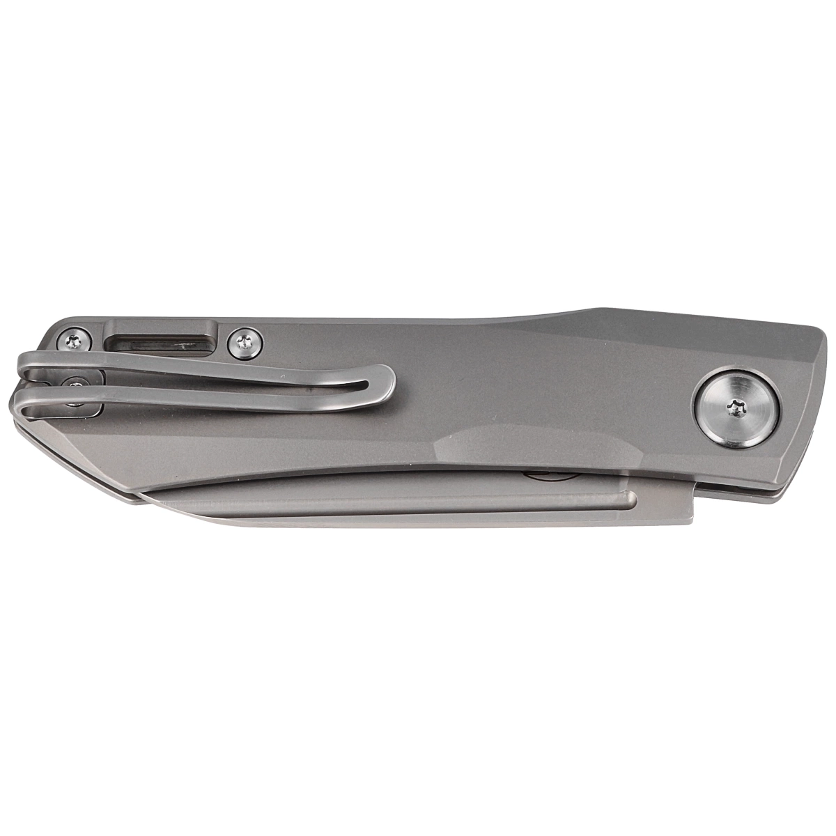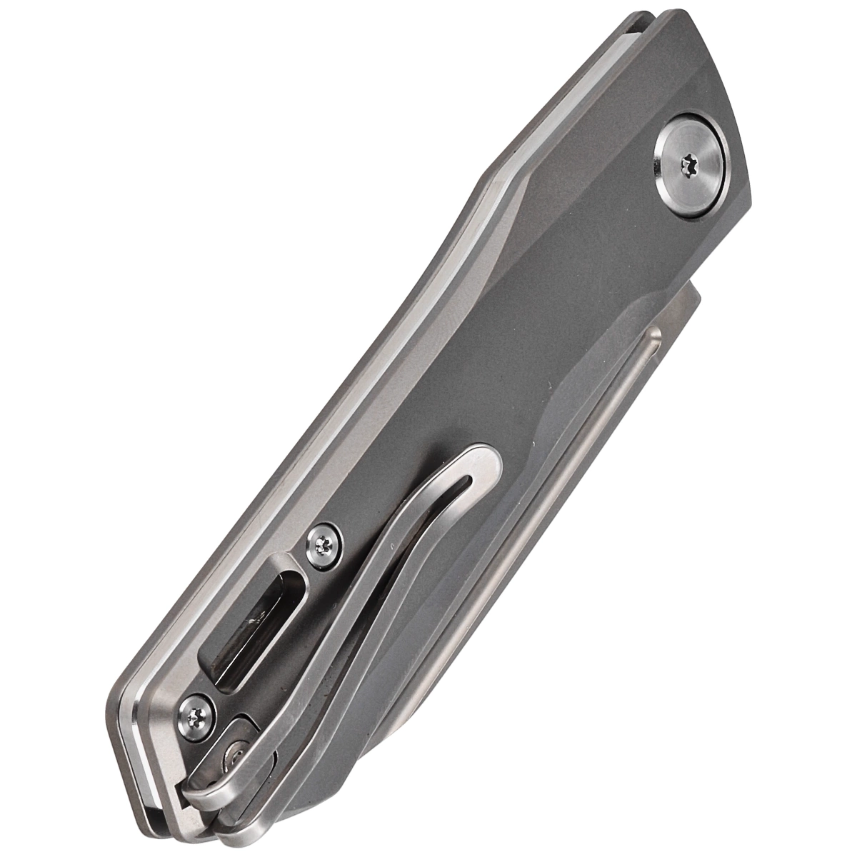 Handle - is two pieces of solid titanium 6AL4V. The chamfered edges of the sheaths eliminate sharp edges for comfort and improve grip security. A large pivot screw is characteristic of Jacob's designs. A solid backspacer provides rigidity and strength to the overall design. The simple, secure construction of this knife gives you the confidence of many years of use. The single-position, right-handed deep-carry clip allows the knife to be carried in the tip-up position, with the tip of the blade upward.