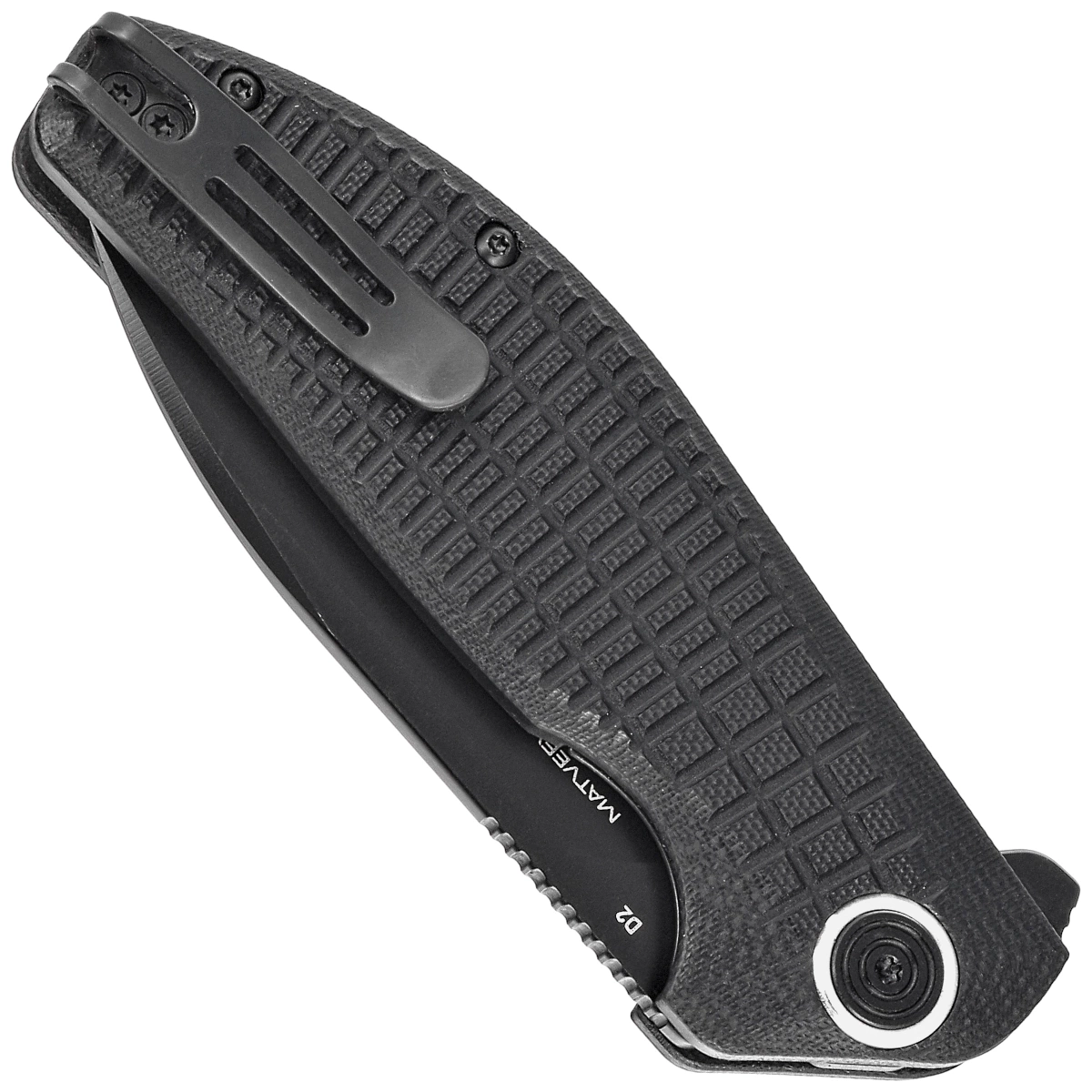 • Acutus Black G10, Black, a universal compact EDC folder designed by Grigorii Matveev. Excellent grip ergonomics and blade to handle ratio. D2 tool steel on the blade, coated with black PTFE coating, G10 on the handle, a knife that will not disappoint!