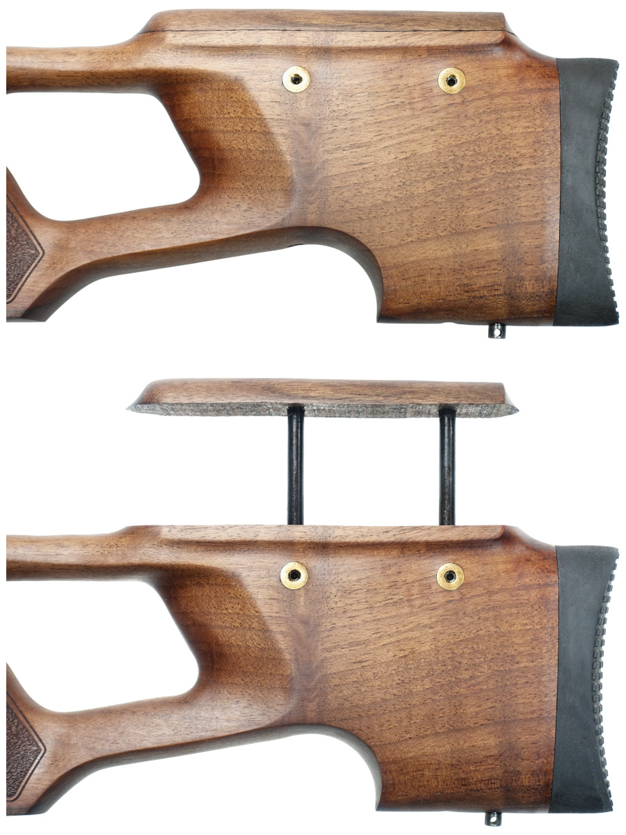 Stock – ambidextrous design with a ThumbHole (TH) configuration, crafted from premium selected Turkish walnut. The contoured cheek pad facilitates comfortable handling and precise aiming. A rubber butt pad absorbs recoil energy.