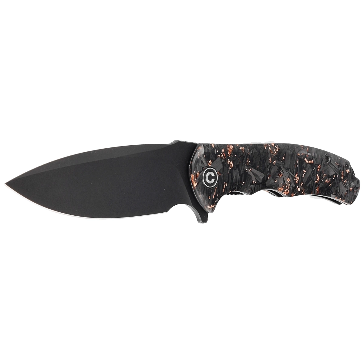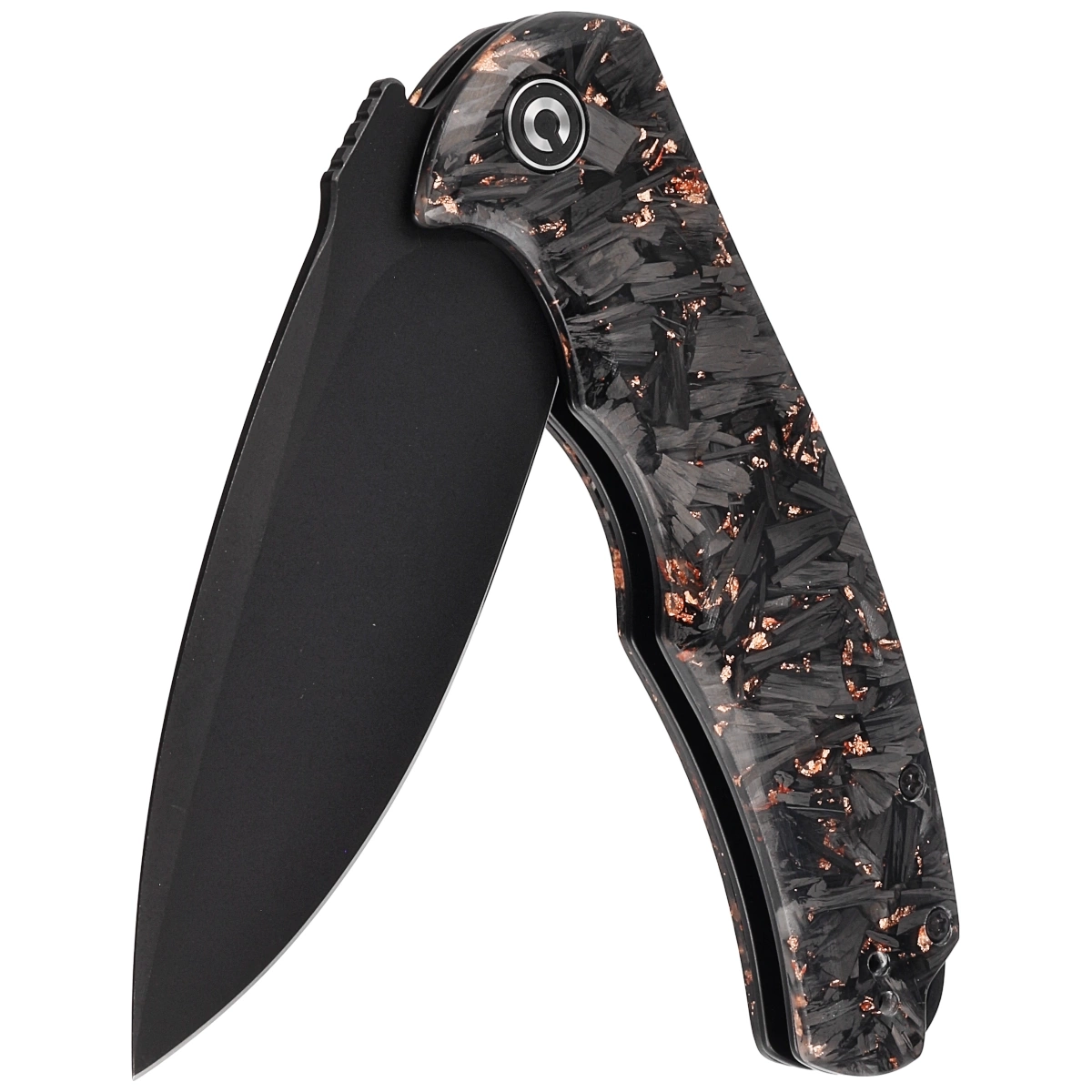 Handle material: Shredded Carbon Fiber and Copper Shred in Clear Resin.