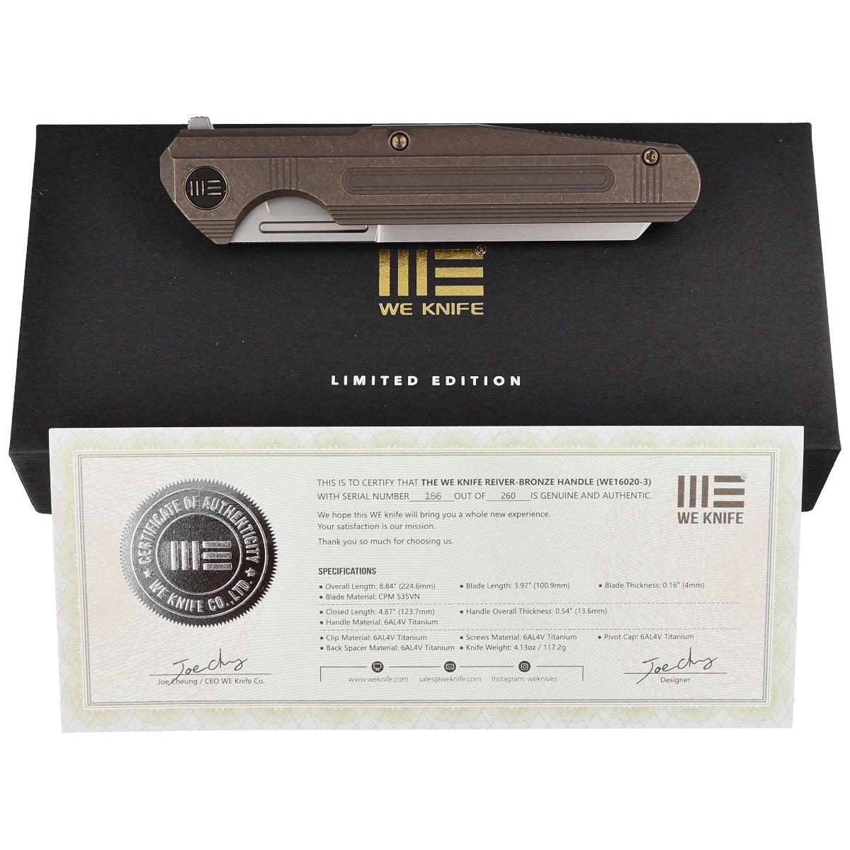 WE Knife Reiver LE No xxx/260 Bronze Titanium, Silver Bead Blasted CPM S35VN knife(WE16020-3)