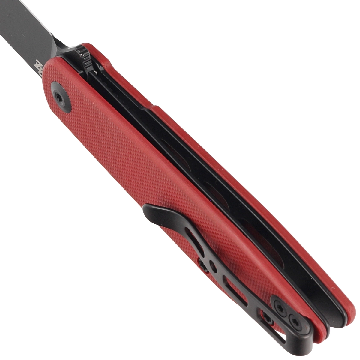 Handle - made of G10, a composite fiberglass material compressed with synthetic resin. The chamfered edges of the covers eliminate sharp edges for comfort, and the jimping made at the front on the liners improves grip security. An open-backed design fixed with steel spacer sleeves reduces weight and facilitates cleaning. A single-position (right) deep-carry clip allows you to carry the knife discreetly in your pocket in tip-up position (tip of the blade upward).