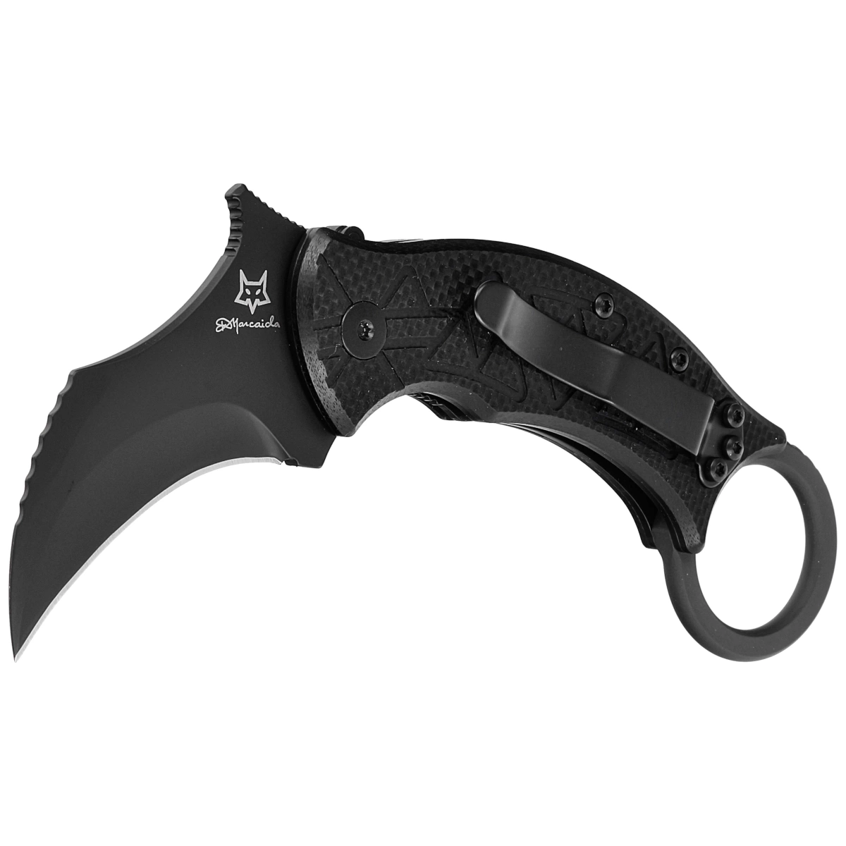 Tribal K Black G10, Black Top Shield modern folding karambit designed by Doug Marcaida, a master of Filipino martial arts. Many years of experience with knives of this type have been poured into this design, full of useful solutions. N690Co steel blade with black Top Shield® coating, grooved finger ring, G10 grips, a tool that will not disappoint!