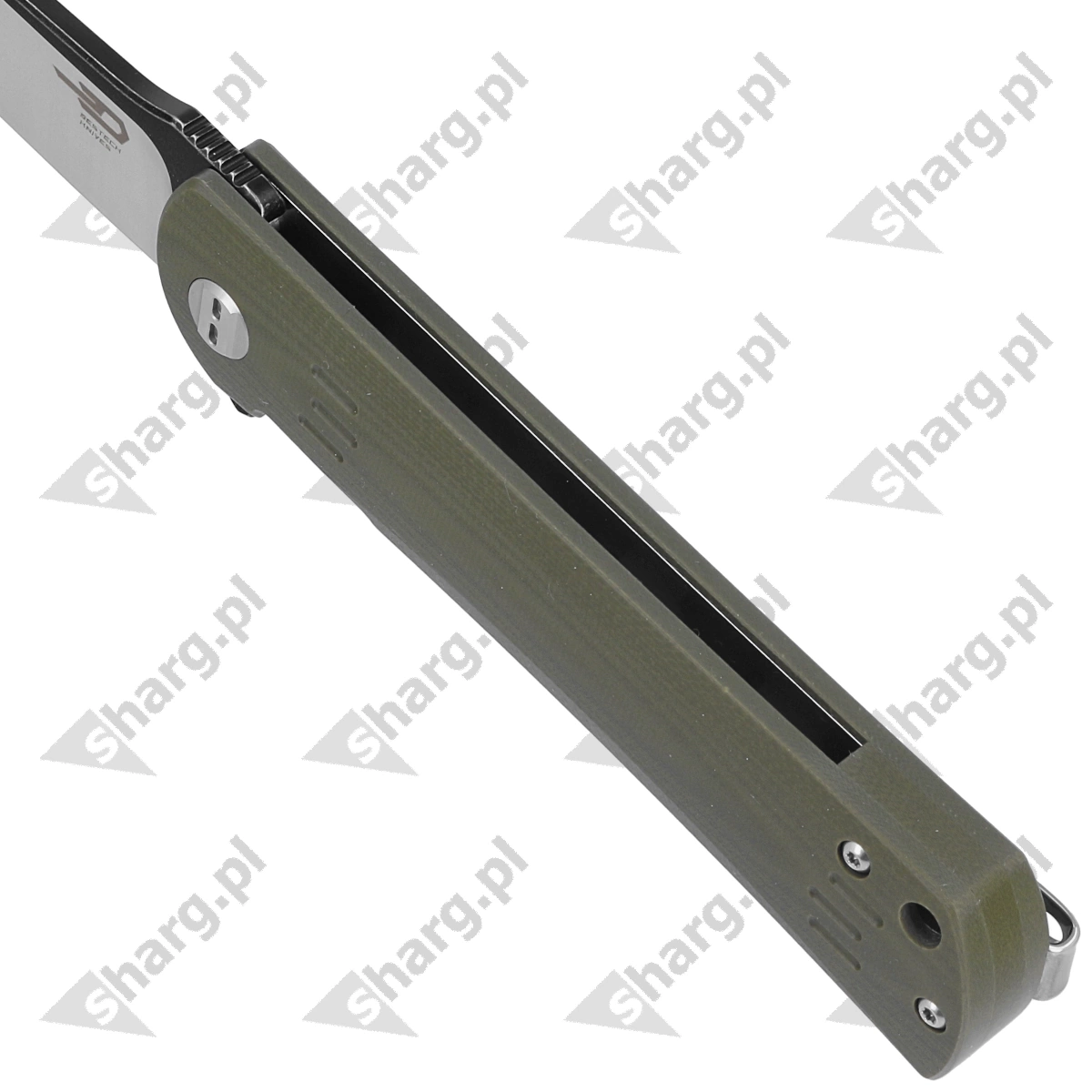 Handle grips - made of G10, a plastic insensitive to weather conditions, resistant to chemicals and mechanical damage Chamfered edges of the covers eliminate sharp edges and textured surfaces improve grip security. The backspacer to which the grips are attached guarantees the rigidity and strength of the entire structure. A single-position, right-handed clip allows the knife to be carried in tip-up position, with the tip of the blade upward.