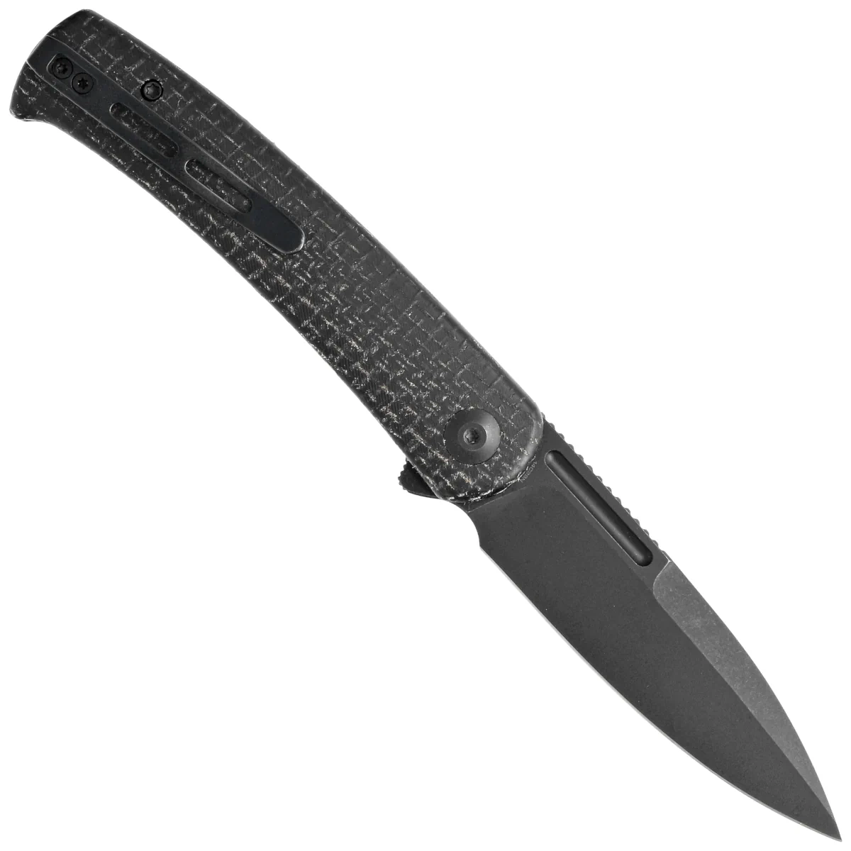 Caetus Black Burlap Micarta, Black Stonewashed slim, full-size folder that opens two ways with a milled double-sided nail nick or a flipper flipper, and thanks to the support of ceramic ball bearings, the action of the blade opening mechanism is extremely smooth. An exceptional EDC knife offering excellent value for money with an ergonomic Handle that fits the shape of your hand, finished with a light spear for a better grip.