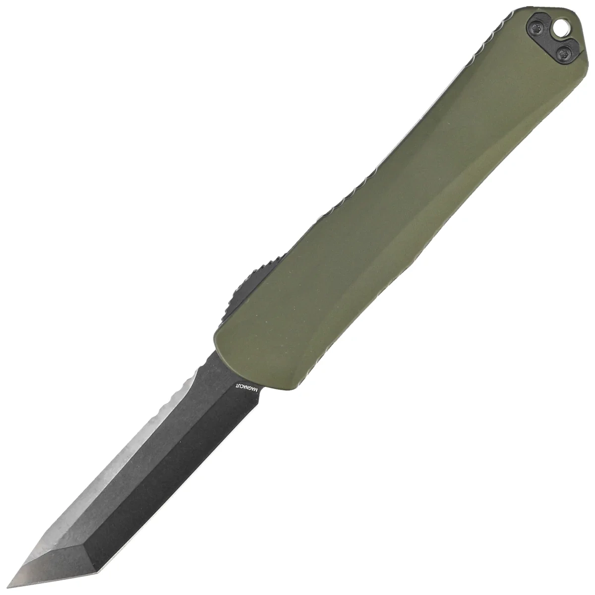 - Manticore-X Tanto Green Anodized Aluminium, Black DLC S35VN full size OTF automatic knife from the Manticore range. Operating in D/A mode and featuring a hell of a fast blade extension mechanism. Designed by Tony Marfione Jr. owner of Heretic Knives