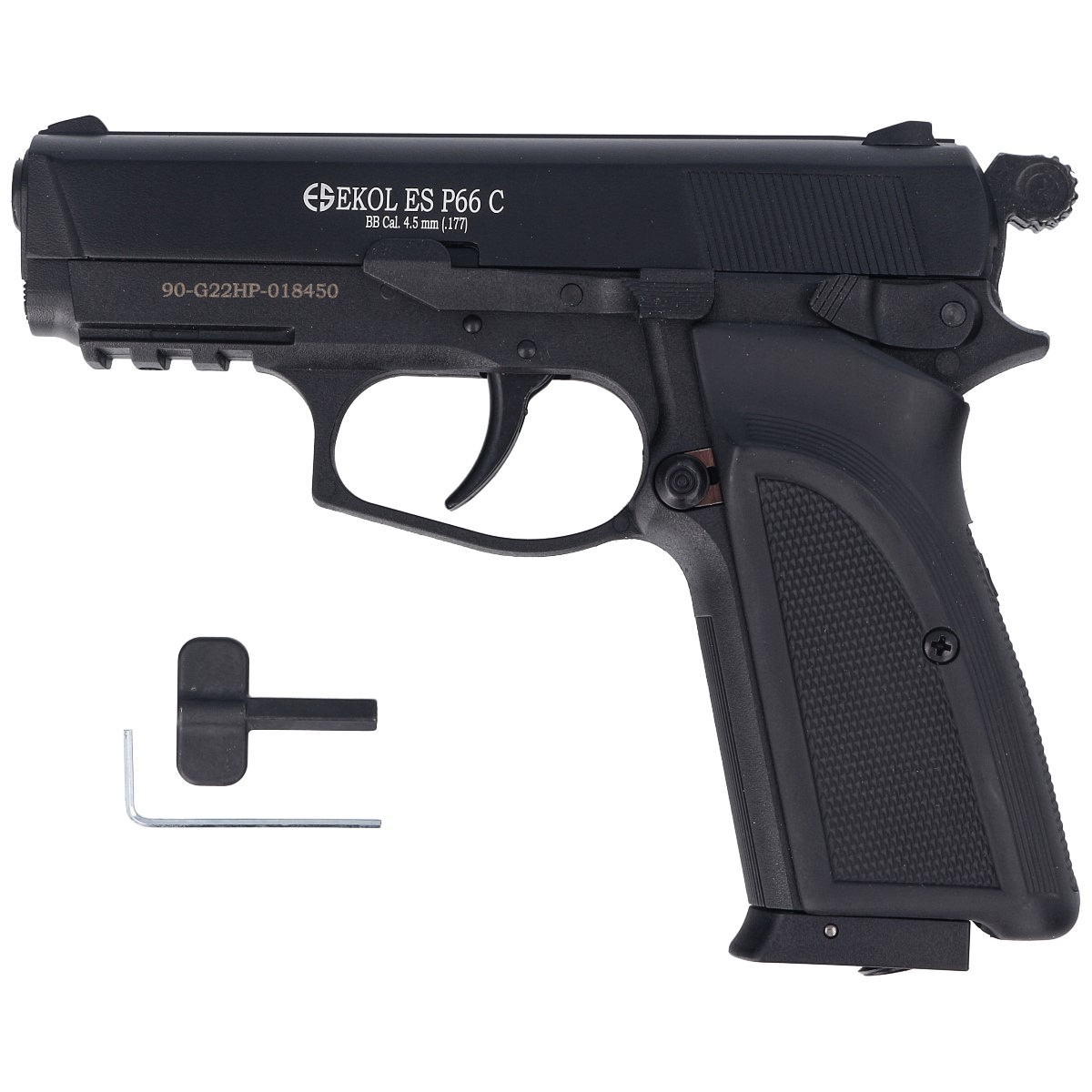 - Ekol ES P66C Matte Black compact, ultra-lightweight semi-automatic airgun, structurally based on a blank pistol. With such strong roots, this powerful airgun reaching a velocity of 135 m/s, is well-suited for dynamic sport shooting and tactical training.