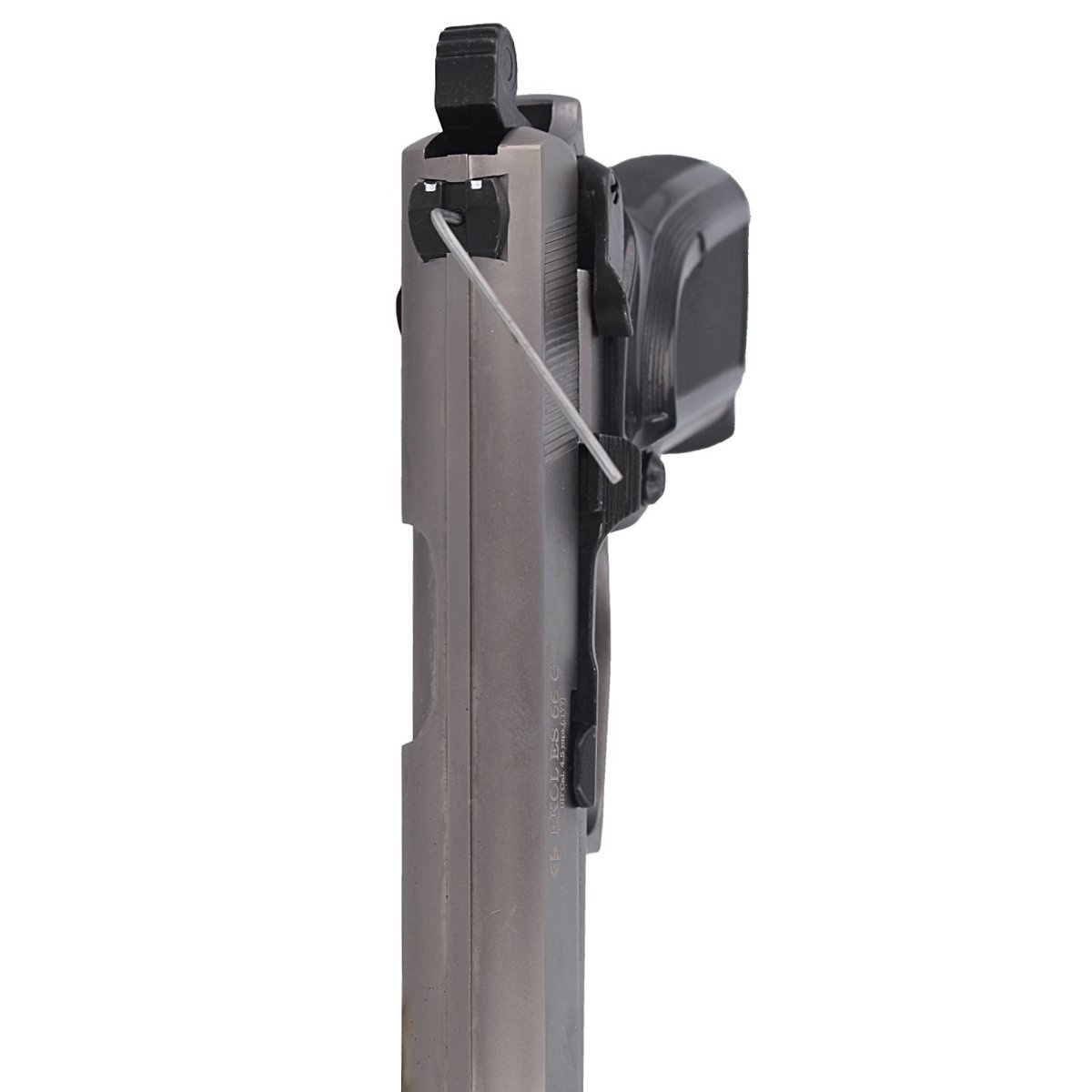 Ekol ES 66C Fume (Compact) is an compact air pistol based on the blank-pistol design by Voltran. It offers a realistic appearance and a metal solid construction for durability and reliability. The slide, frame, hammer, decocker lever, and small components are all made of metal. Thanks to such strong roots, this powerful 140 m/s airgun is suitable for both dynamic sports shooting and tactical training.