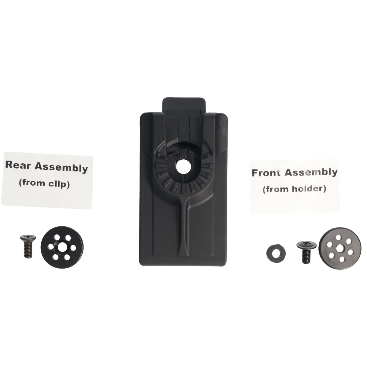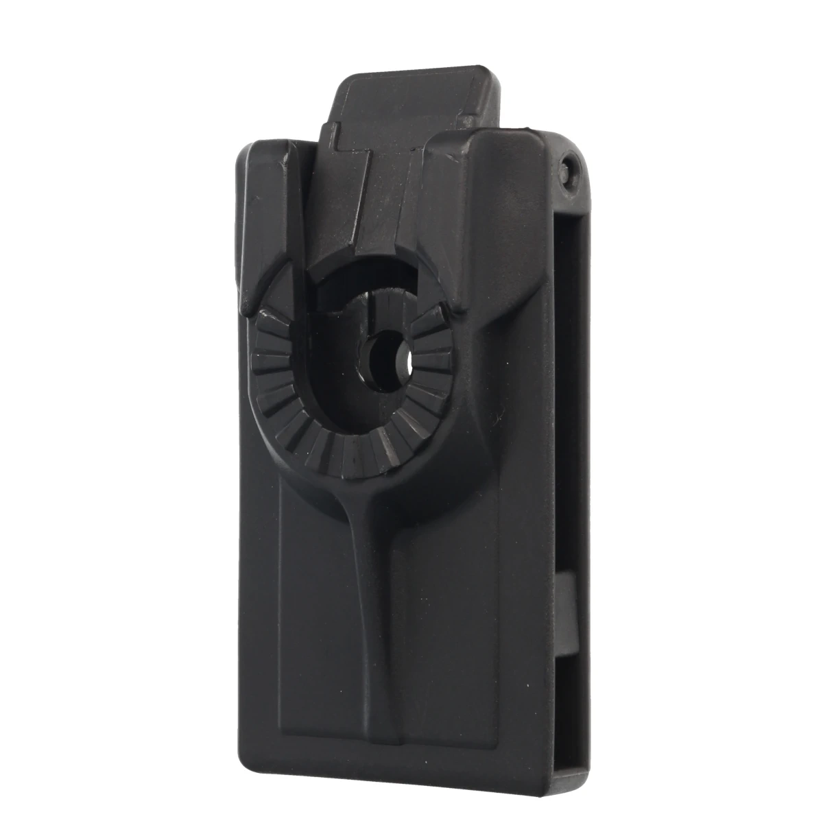 UBC-05-A - universal belt-clip allows the user to quickly remove the holster / holder from the fastening and quickly attach another holster / holder equipped with a UBC-05 fastening mechanism. Fixing stays on the belt - you only have to choose a different pouch and attach it. Thanks to the highly flexible system, the user has the option of exchanging equipment for what is necessary at the moment. A holster for a telescopic stick can be exchanged for a magazine pouch or a flashlight cover. UBC-05-A fastening fits most 38-68 mm. In order to prevent the equipment from moving on the belt, e.g. when running, the mounting is equipped with two adjustment screws, which block the mounting in the required place on the belt. UBC-05-A allows you to rotate the full 360 degrees of attached equipment, infinitely variable angle settings (blocking the holster in one of the 16 positions).