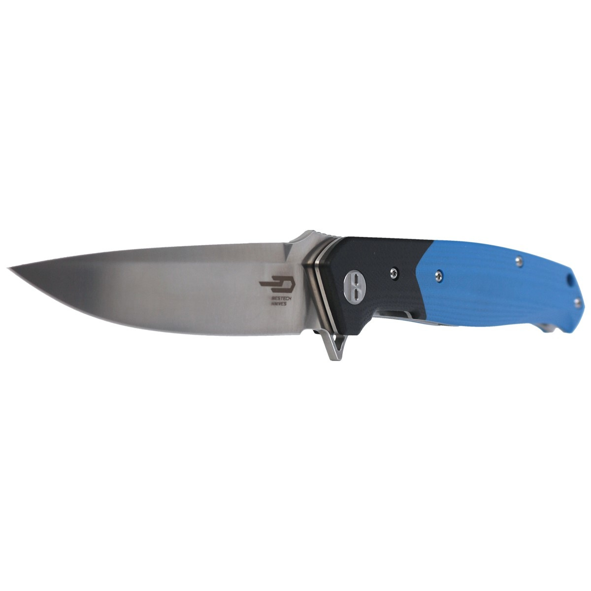Swordfish Black / Blue G10, Satin slim EDC folder with an aggressive design featuring a 4 inch satin blade with beautiful lines in proven D2 tool steel. Handle made of rugged black and blue G10 composite. The Bestech brand has made it their goal to create affordable, high-quality knives. Swordfish is one of those folders, sturdy with excellent action and excellent ergonomics. Stand out!