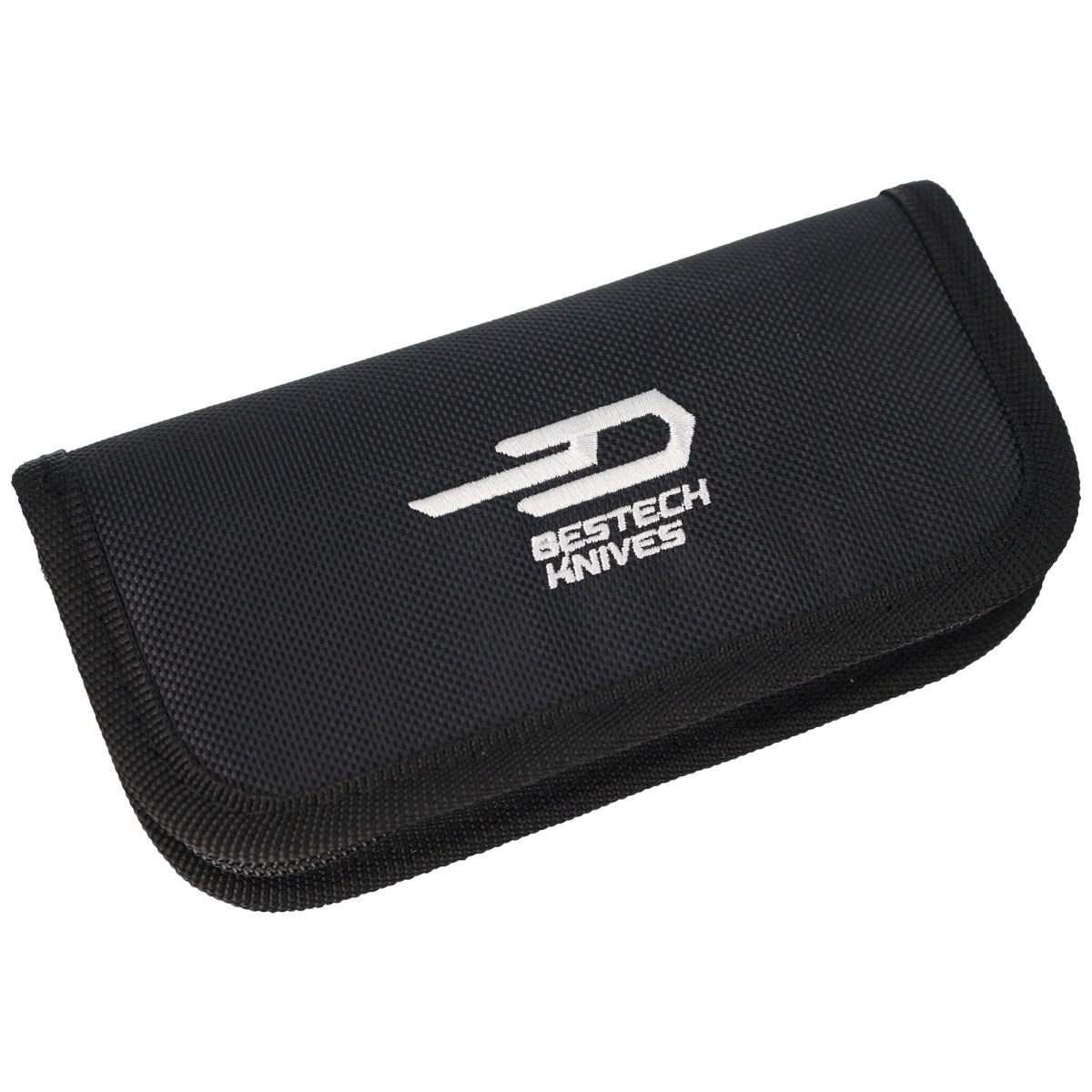 Case - the knife is packed in a zippered nylon soft pouch with the brand's logo for safe carrying and storage of the folder.
