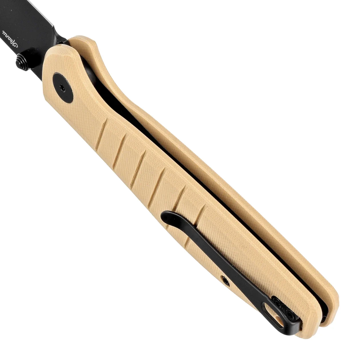 The Goodboy Khaki G10, Black DLC is the perfect combination of functionality and style, a design by American designer Keanu Alfaro. Made of good materials at an extremely attractive price, the folder features a D2 steel blade, a reversible clip and a gravity-openable blade, Button Lock. This exceptional knife will meet your requirements, whether you are outdoors or doing everyday tasks. Bestseller!