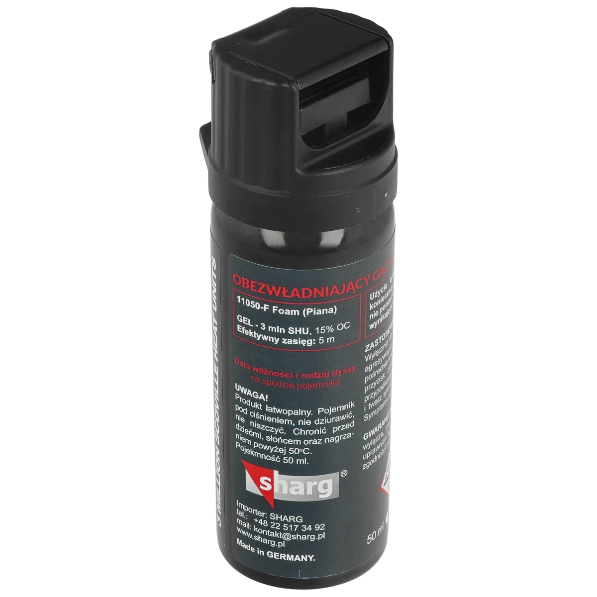 Sharg Graphite Red Pepper Foam 3mln SHU Stream is one of the strongest pepper sprays available on the market. Concentration of active ingredient 15% OC (Oleoresin Capsicum), including 1.95% MC (Major Capsaicinoids), sharpness 3 million SHU (Scoville Heat Units). Contains an incapacitating agent in foam form. Enables effective defense against an attacker/group of attackers, including those under the influence of alcohol or psychoactive drugs and aggressive animals. Manufactured in Germany, 50 ml capacity.