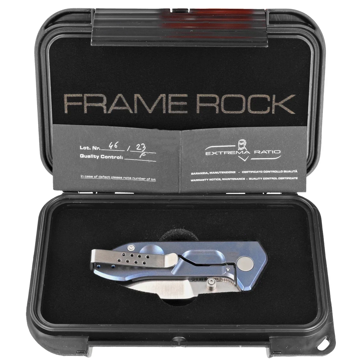 • Frame Rock Blue Titanium, Satin compact EDC folding knife from Extrema Ratio. Built with a huge amount of power, it will stand up to the toughest challenges. Superior materials such as titanium and N690 steel and compact size for easy carrying!