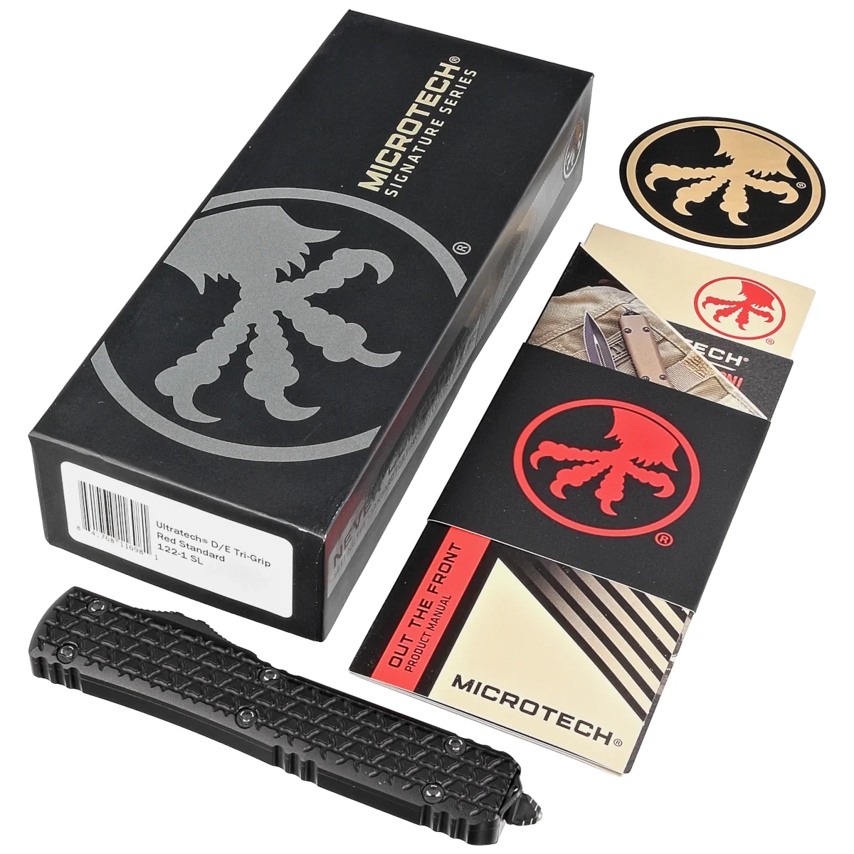 Microtech Ultratech D/E Sith Lord Signature OTF Knife Tri-Grip Black Aluminum, Red M390 by Tony Marfione (122-1SL)