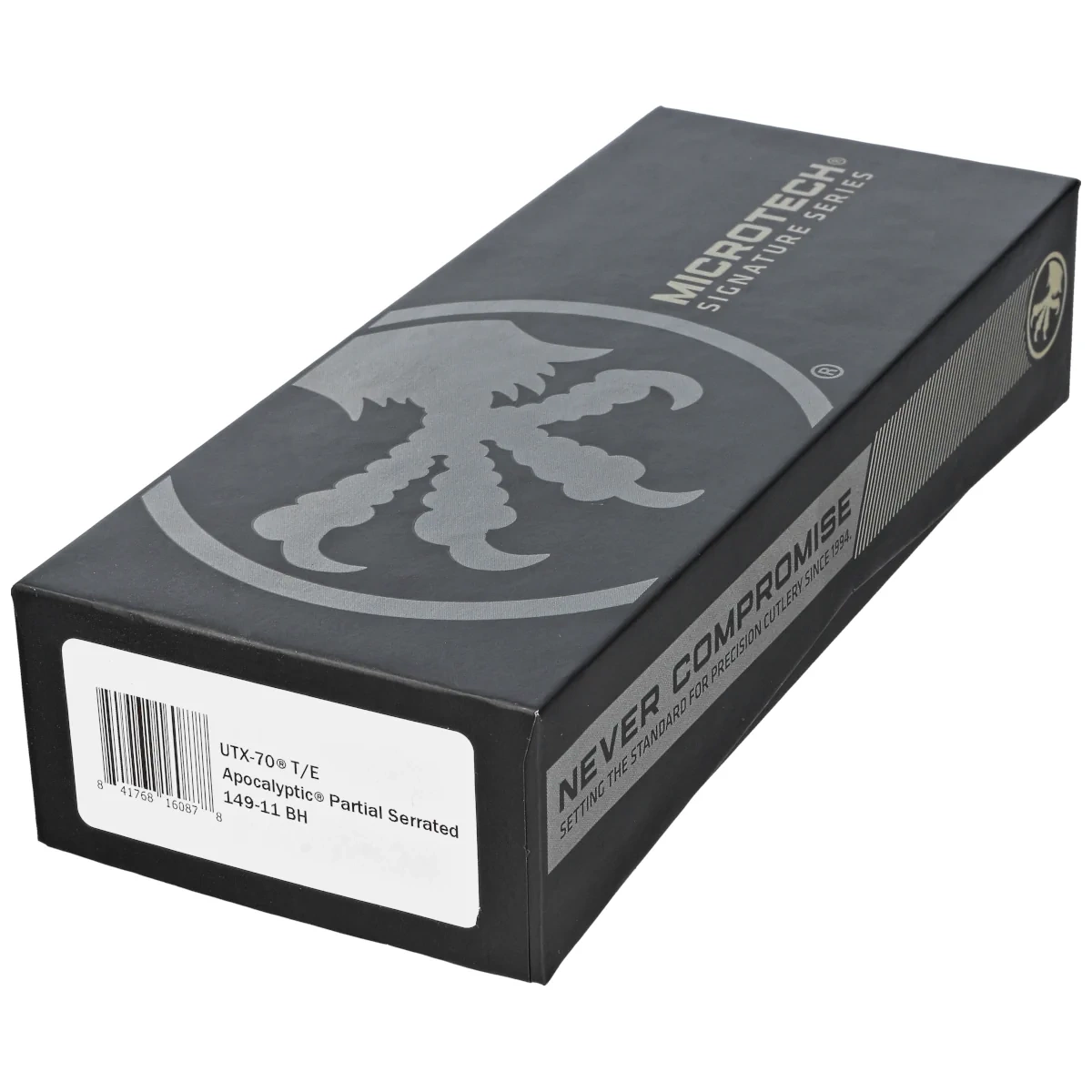 UTX-70 OTF Line - 70% the size of the Ultratech®, the UTX-70® is designed to fit perfectly in the hand, making it an excellent choice for everyday carry. The release mechanism is easier to operate than the full-size Ultratech® and is ideal for smaller or sensitive hands. The UTX-70® still has a fully functional glass breaker and all the features of the full-size Ultratech®.