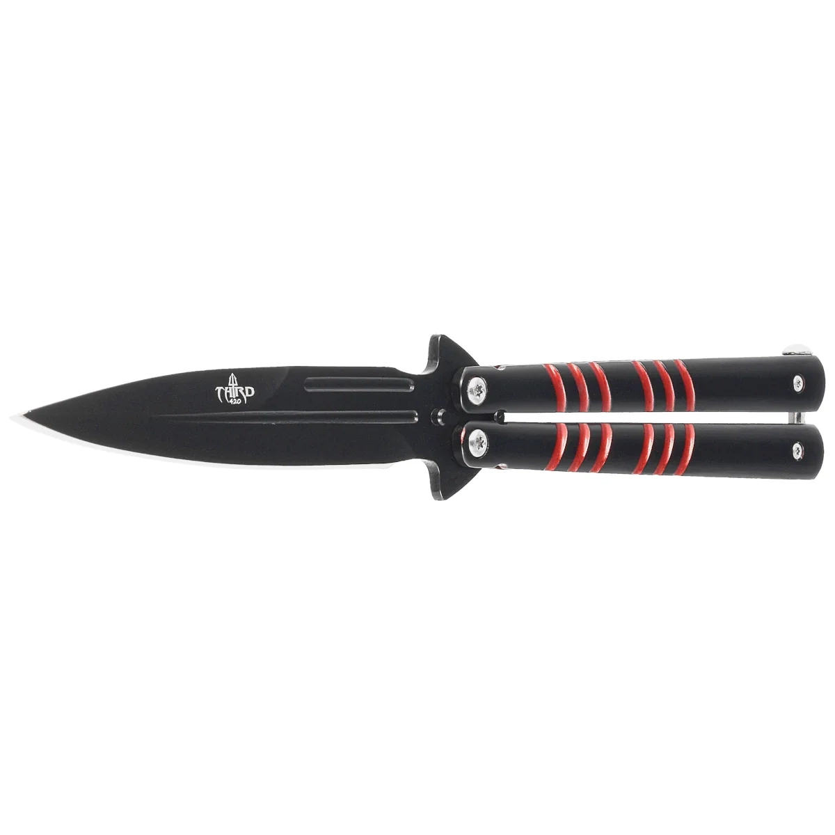 Third Decor Habitat Balisong Black/Red Stainless Steel, Black 420 Butterfly Knife (16070R)