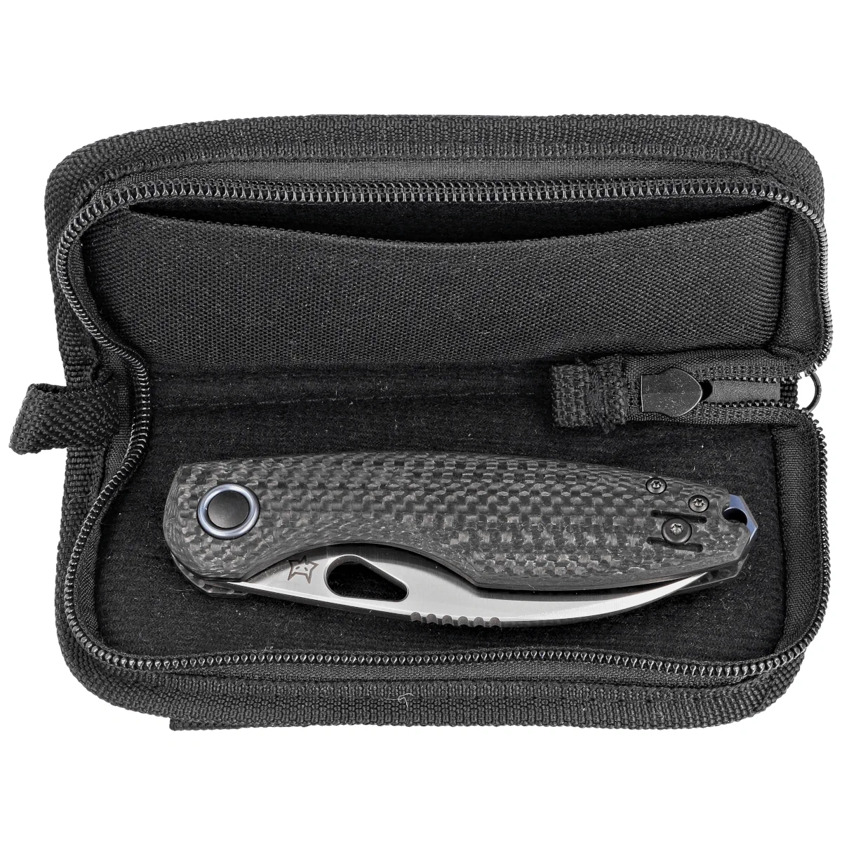 • Chilin Carbon Fiber, Satin, an elegant design by Jesper Voxnaes with a distinctive leaf-shaped wedge. Superior M398 tool steel, rugged carbon fiber Handle in Jesper's typical utilitarian and modern style!