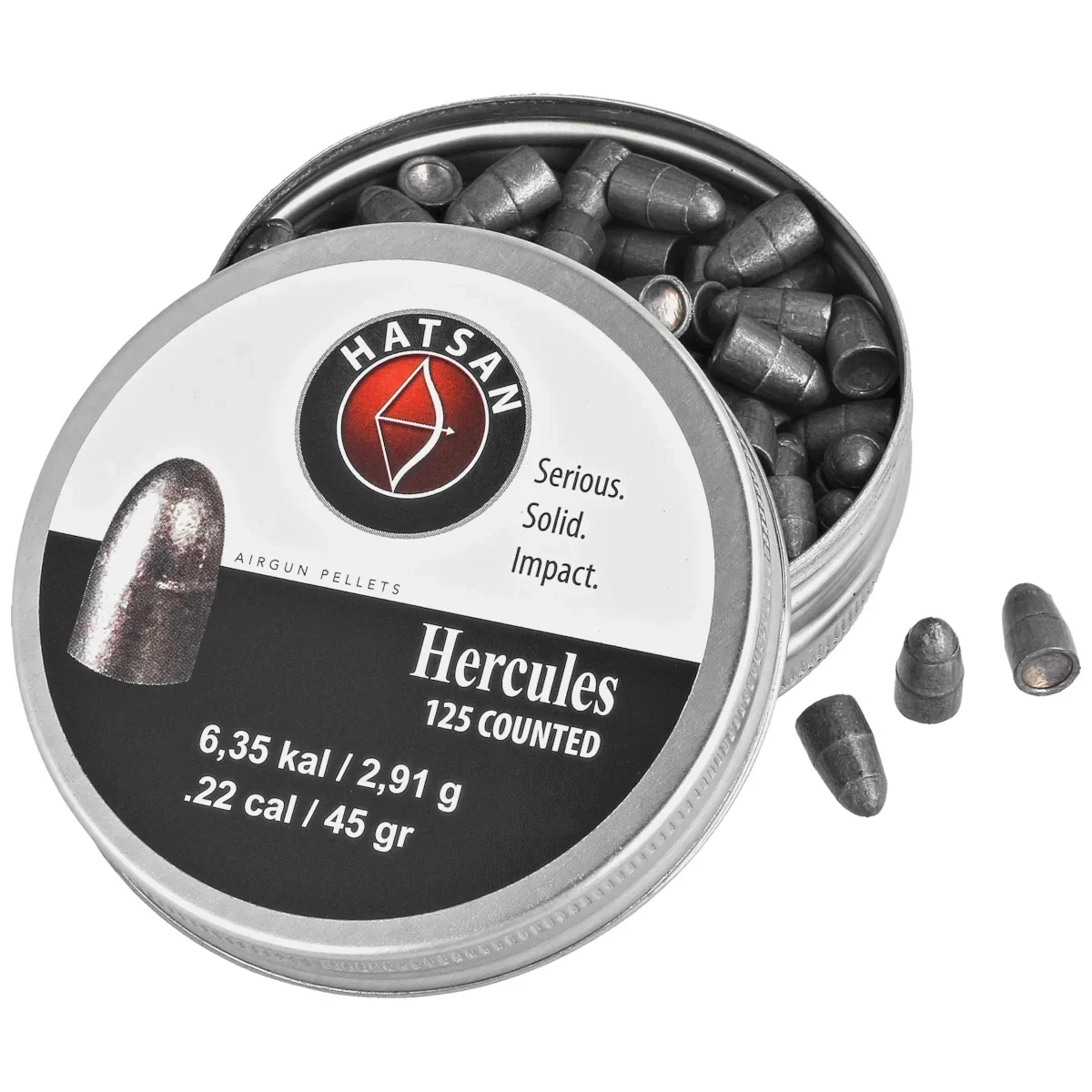 - Hatsan Hercules 45 gr precision premium pellets in 6.35 mm cal. Designed for the most powerful rifles in the FAC version for accurate shooting at long distances (not sensitive to wind gusts) 50m, 100m and even 200 meters. Favorable ballistic coefficient