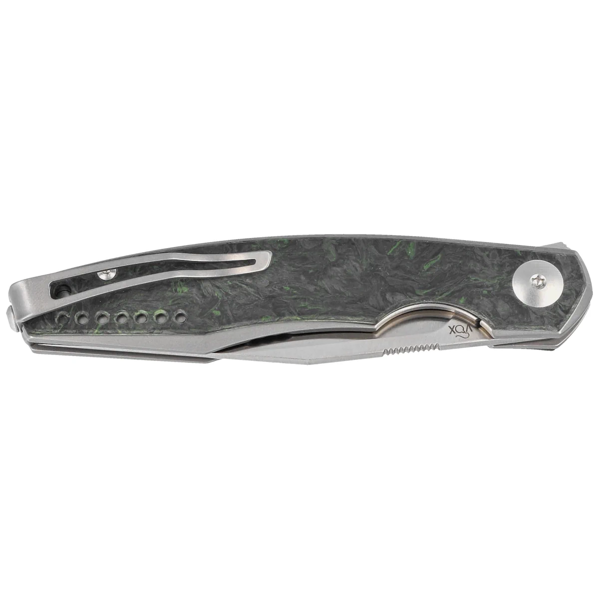 • Belone Titanium Stonewashed / Dark Matter Green Fat Carbon Fiber, Satin shape derived from traditional Italian knives. Designed according to the minimalist style of Danish knifemaker Jesper Voxnaes. A lightweight knife adorned with sophisticated details!