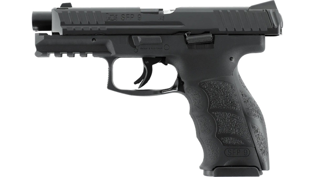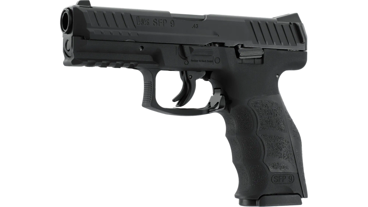 • The Heckler & Koch T4E SFP9 caliber .43 CO2 is a realistic rubber and pepper ball pistol, perfect for self-defense and training purposes. It provides grip customization, CO2 propulsion, and realistic recoil.