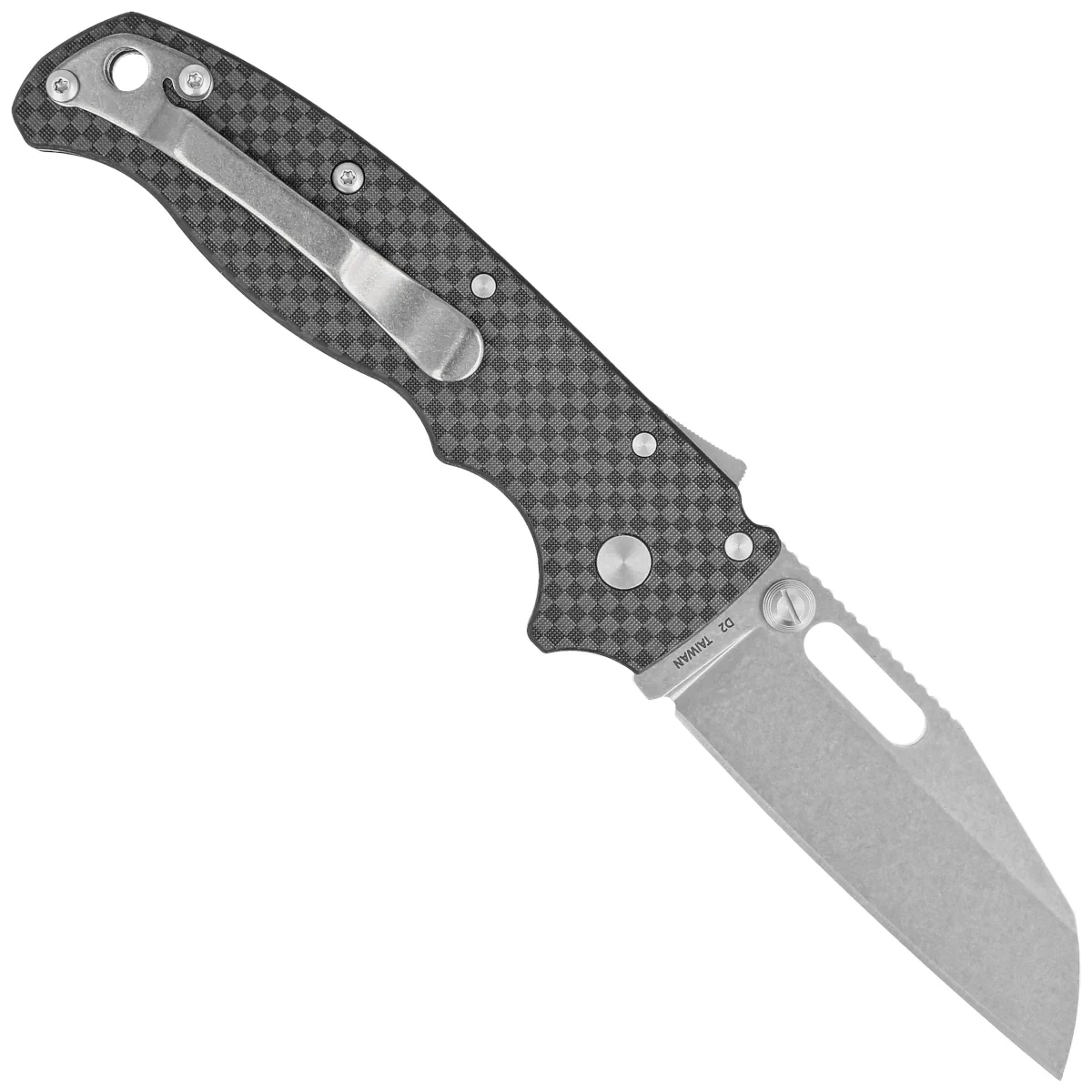 AD20.5 Shark Foot Carbon Fiber, Stonewashed D2, the result of years of work and experience of Andrew Demko, a long-time designer at Cold Steel. A compact folding knife that was designed for the toughest tasks.A real tool, characterized not only by its robustness and power, but also by its unique design.Ergonomic Handle, made of Carbon Fiber composite and Blade made of D2, a proven tool steel. One of the most important elements of the knife is its lock. Shark-Lock™ is an innovative mechanism that is considered one of the strongest in the world. Thanks to it, the knife is not only safe to use, but also gives you the confidence that it will stand up to even the toughest tasks. This is an exceptional example of a compact EDC (Every Day Carry) knife, an excellent choice for anyone looking for a reliable everyday tool.