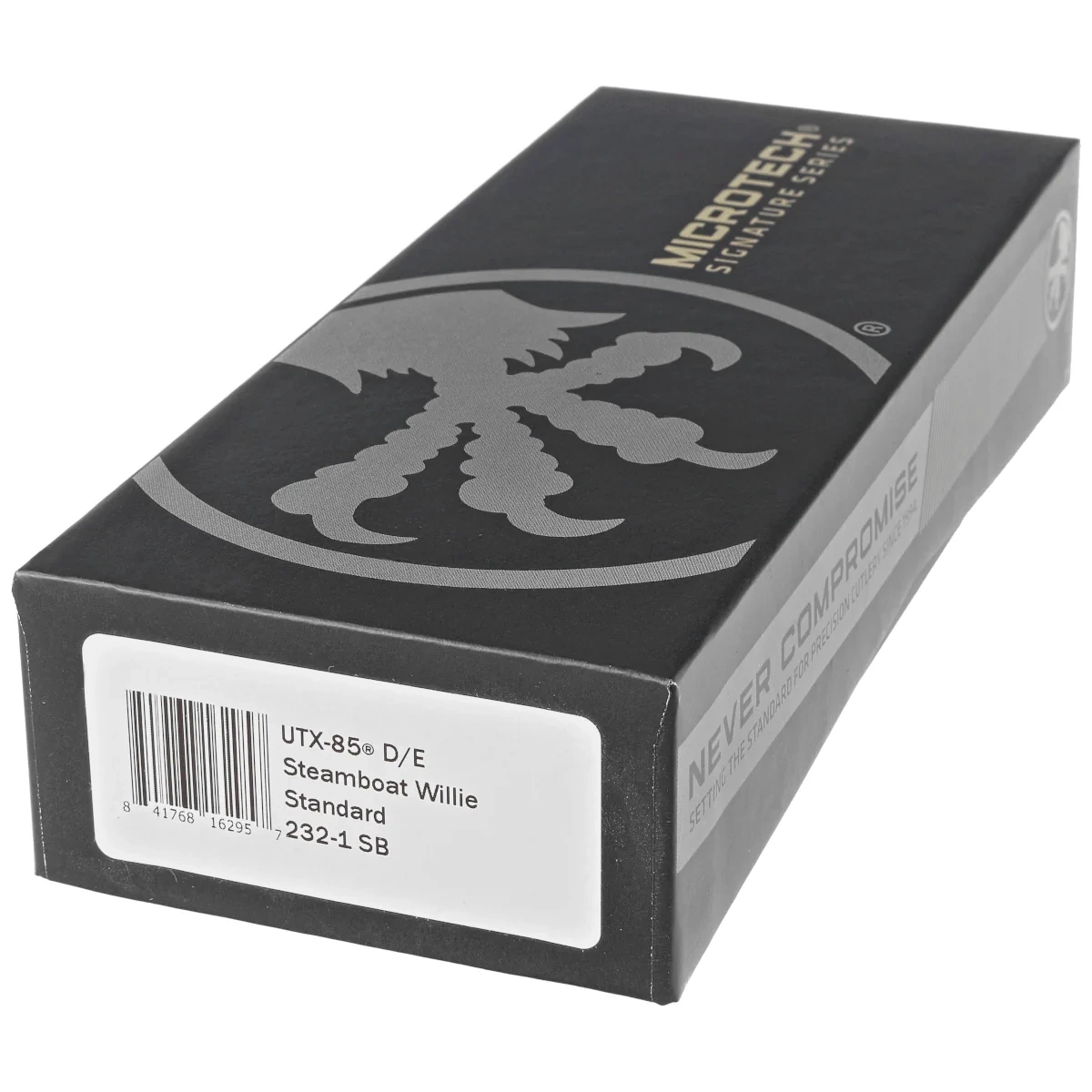 - UTX-85 D/E Steamboat Willie Signature Black Aluminum, Antique White compact OTF automatic knife from the UTX-85 series. Black and white convention, decorated with the iconic Mickey Mouse engraving, which earned it the name "Steamboat Willie".