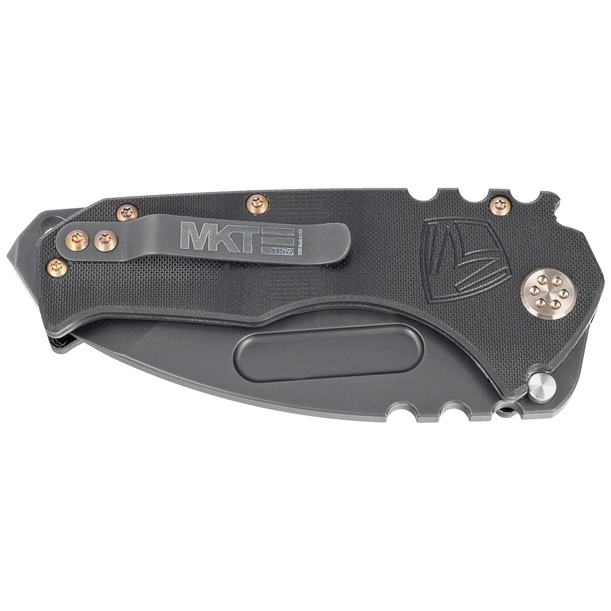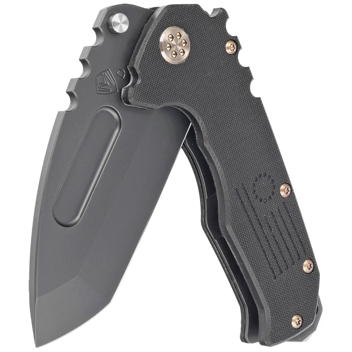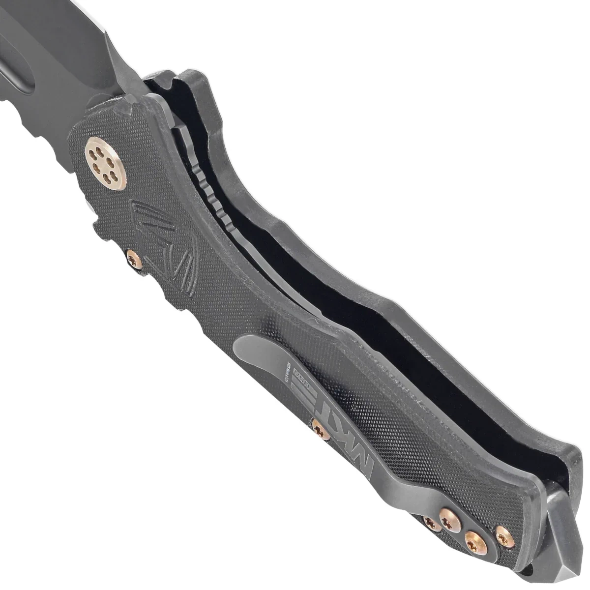 The elite Imperial Praetorian Guard was a unit into which the best of the Roman legionaries were selected to serve as the Emperor's personal protection. The Praetorian Scout M/P Tanto, Black G10 Handle, Bronze HW, DLC Clip, DLC Breaker, Black DLC from MKT is just such an elite knife. Its amazing design is limited only by the strength of its materials. With a 4.8mm thick blade, solid G10 composite grips and 6.35mm thick pivots and bolsters, it stands out from other knives. Beautiful form and function, unrivaled reliability, this is a knife for enthusiasts who recognize no compromise and demand the highest standards!