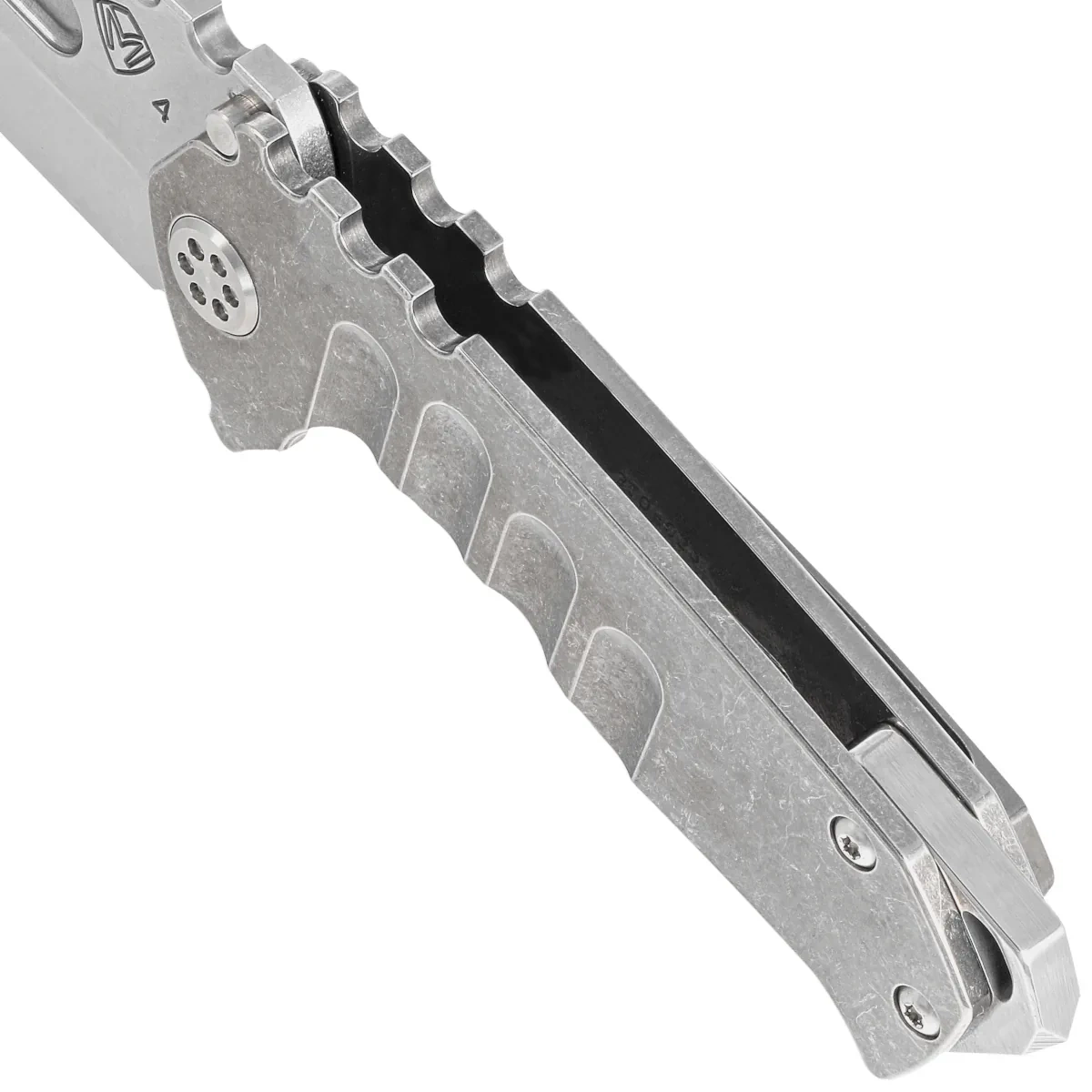 Handle - made from solid titanium, also finished with a machine-applied "tumbled" technique. All Praetorian variants are equipped with a D2 hardened steel backspacer, coated with NP3 which is also a glass breaker. MKT has thoroughly tested these backspacers and found that they are completely reliable and 100% functional. No tricks. There will be no other variants of this backspacer, in a different material or shape, as it is meant to save lives in an emergency, not for decoration. Wear hand and arm protection when testing, as excessive impact force will ALWAYS cause cuts! The whole thing is completed with a solid, clip, also made of titanium, of course.