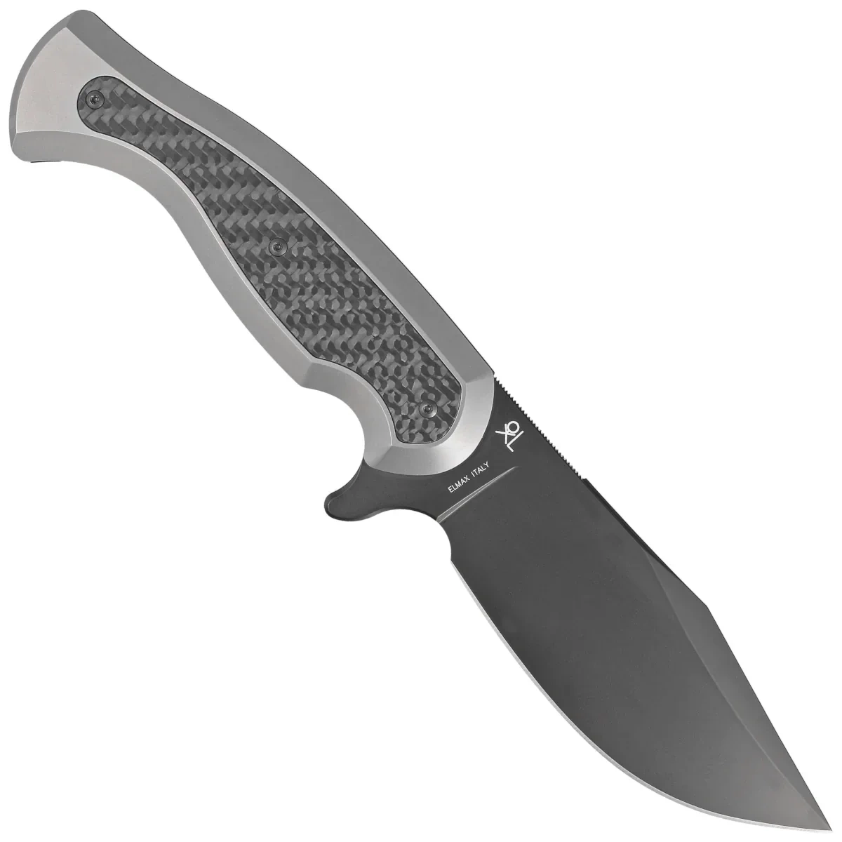 Handle - profiled beadblasted titanium grips with a precision-made Carbon Fiber inlay. The chamfered edges of the covers eliminate sharp edges and the textured and textured surface improves grip confidence. The grip covers are attached to the mandrel with Torx screws. Fore Finger Groove, a deep cut under the finger prevents the hand from accidentally slipping on the blade.